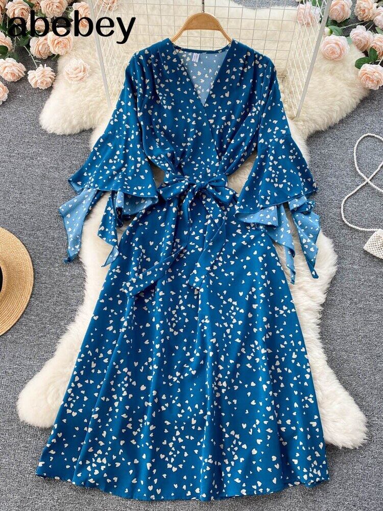 女性のレトロなロングドレスセクシーな V ネックプリントドレス緩いパーティードレスマキシドレスローブ衣装 Vネック Abe59070453485