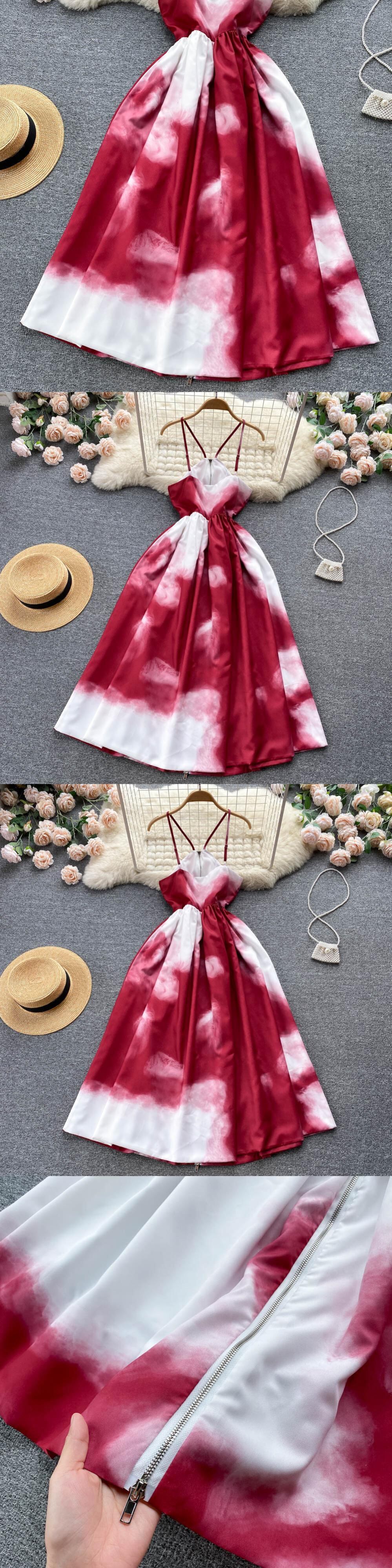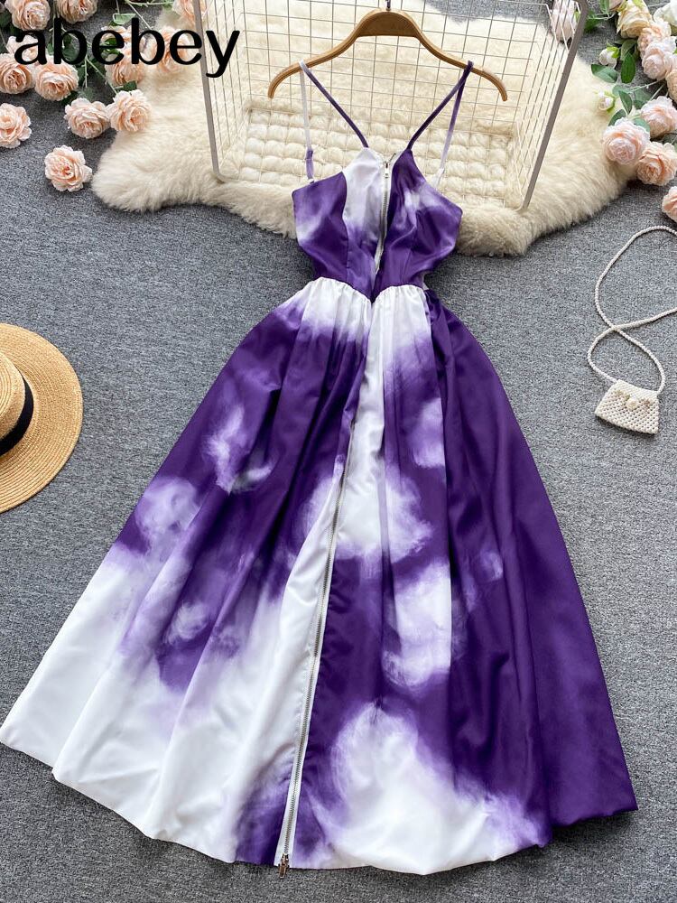 夏セクシーなタイダイプリントスパゲッティストラップロングドレスビーチ休暇ジッパーオープンバック A ライン Vestidos 2022 サマー 夏物 Aライン Abe590128736