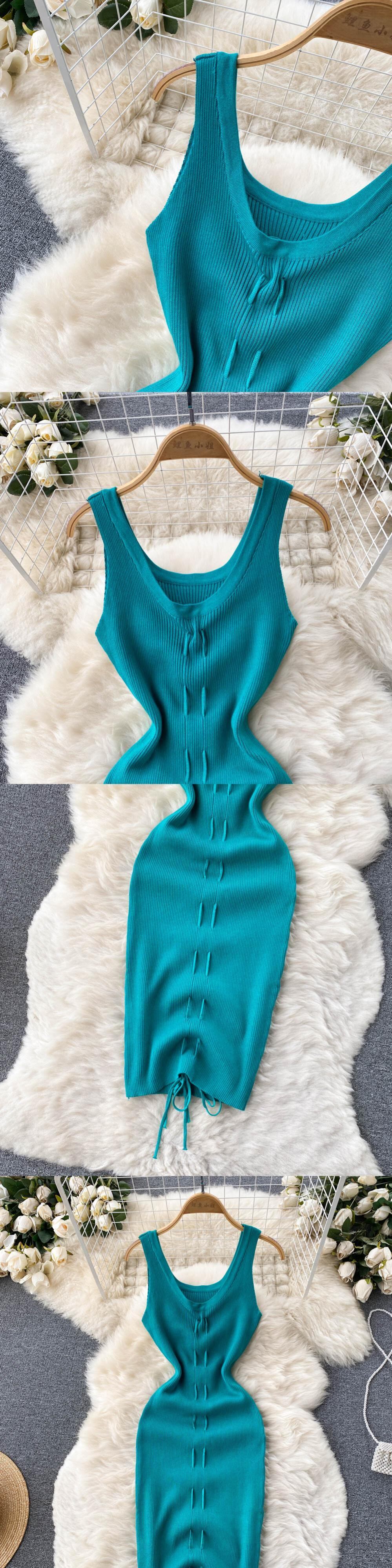 夏の女性のニットシース手紙タンクドレスボディコンニットキャミソールノースリーブパッチワークミニドレス女性 サマー 夏物 Abe60939442640