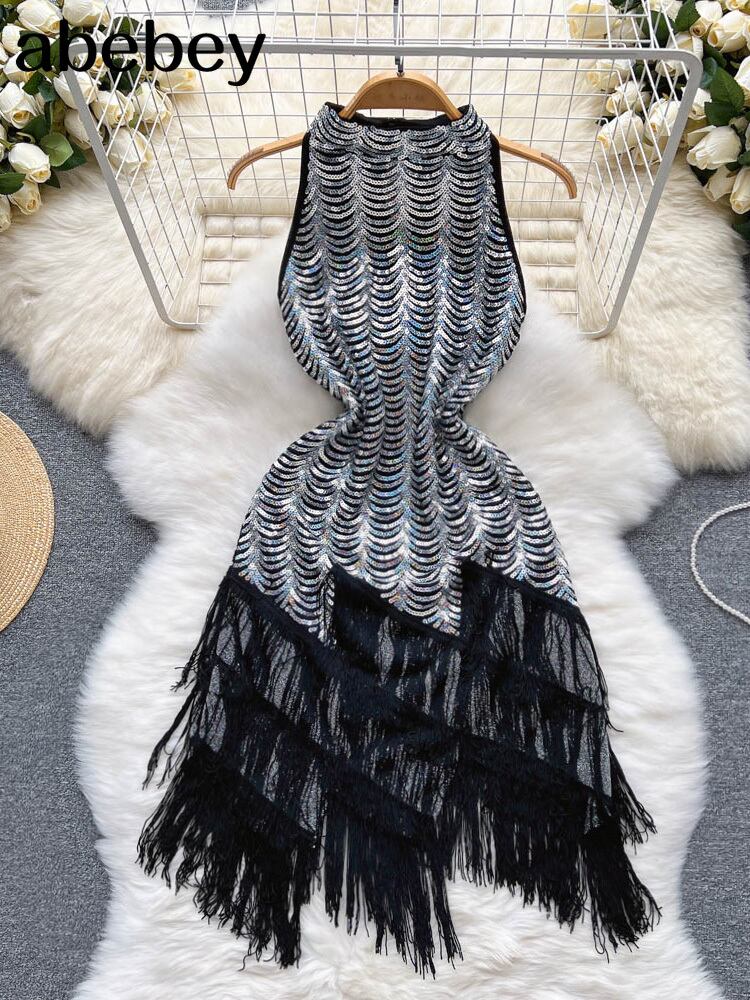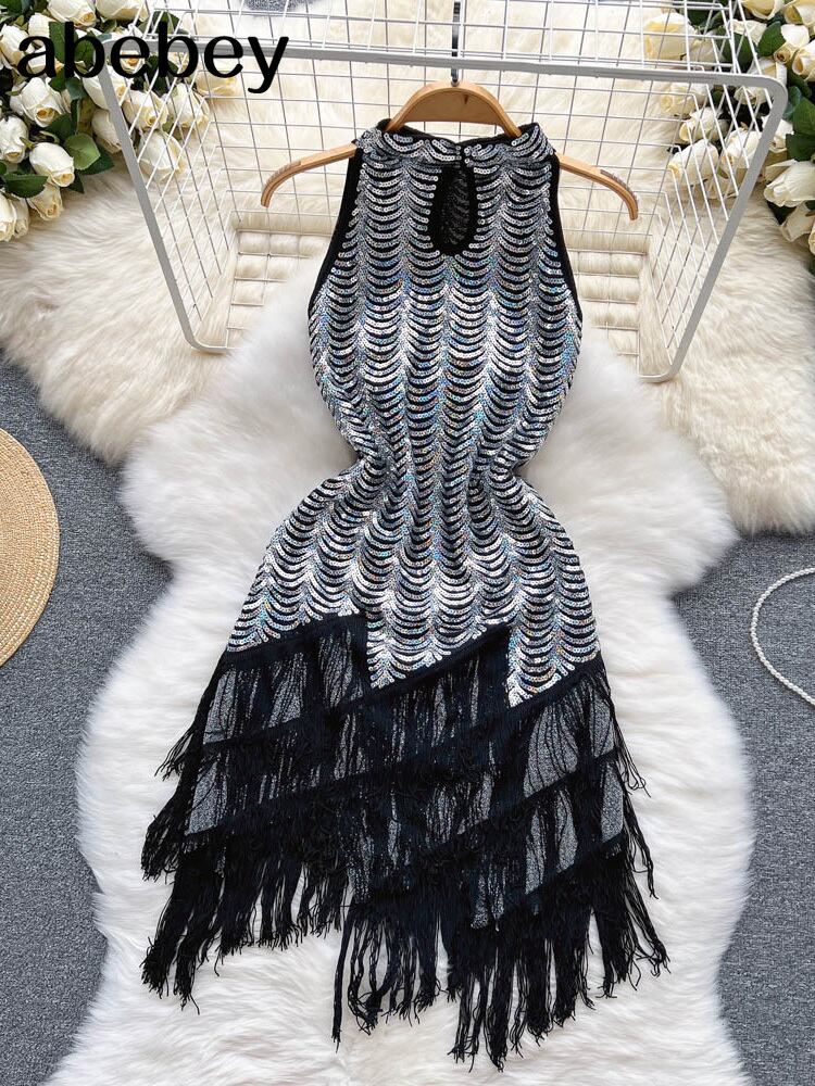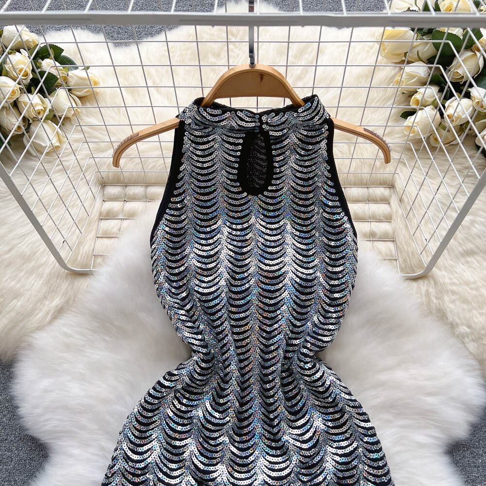 スパンコール電話 2022 スパゲッティストラップドレスタンク女性のセクシーなステッチミニドレスイブニングパーティークラブドレス Abe69402041191