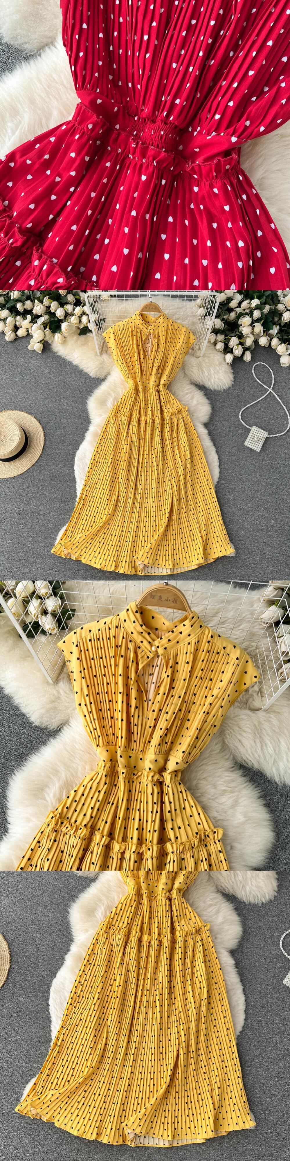 セクシーなスリムビーチロングドレスドレス女性 2022 夏スタンドカラーノースリーブドット Vestido マキシローブ Vestidos サマー 夏物 Abe56162949101