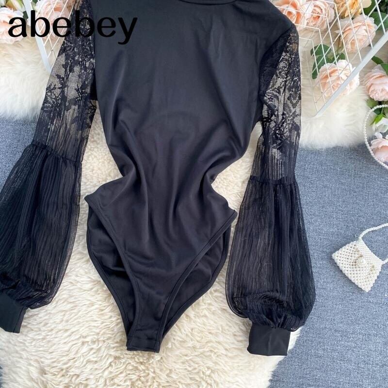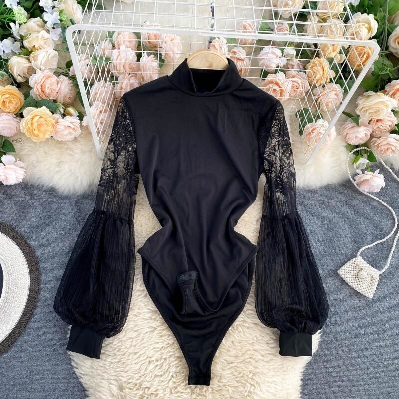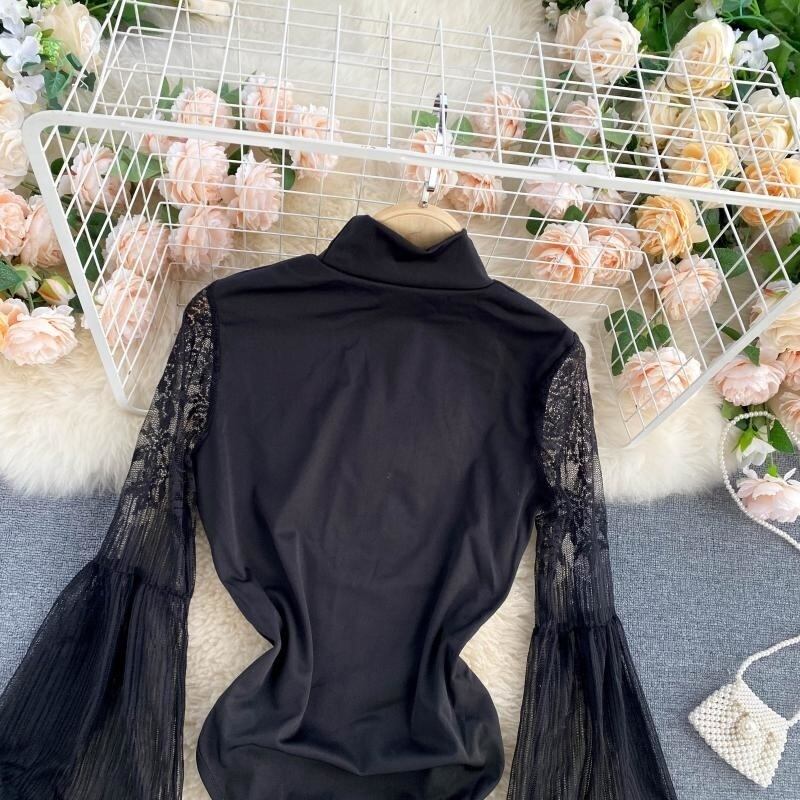 女性 & タートルネック レース ランタン スリーブ シャツ セクシー な中空アウト イン ファッション デザイン レース ステッチ ブラウス エレガント レディース トップス新しい ランタンスリーブ Abe40346886601