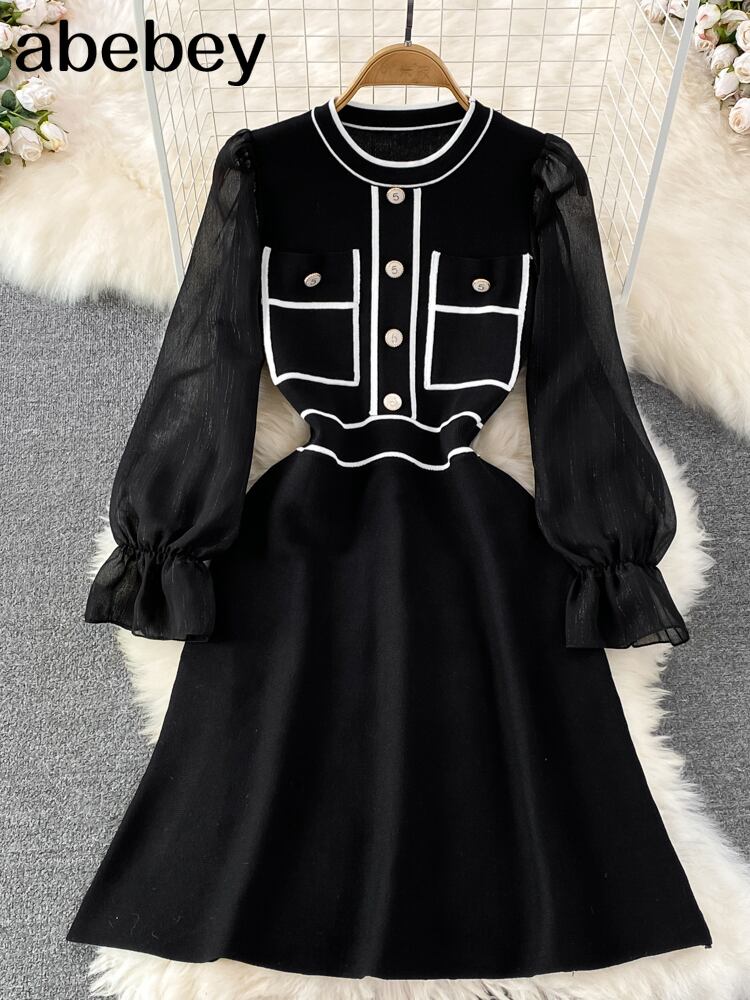 2022 秋冬ショート aline 厚いセータードレスエレガントなニットドレス女性スリムミニドレスシックなニットセクシーなドレス オータム 秋物 ウィンター 冬物 Abe46776449540