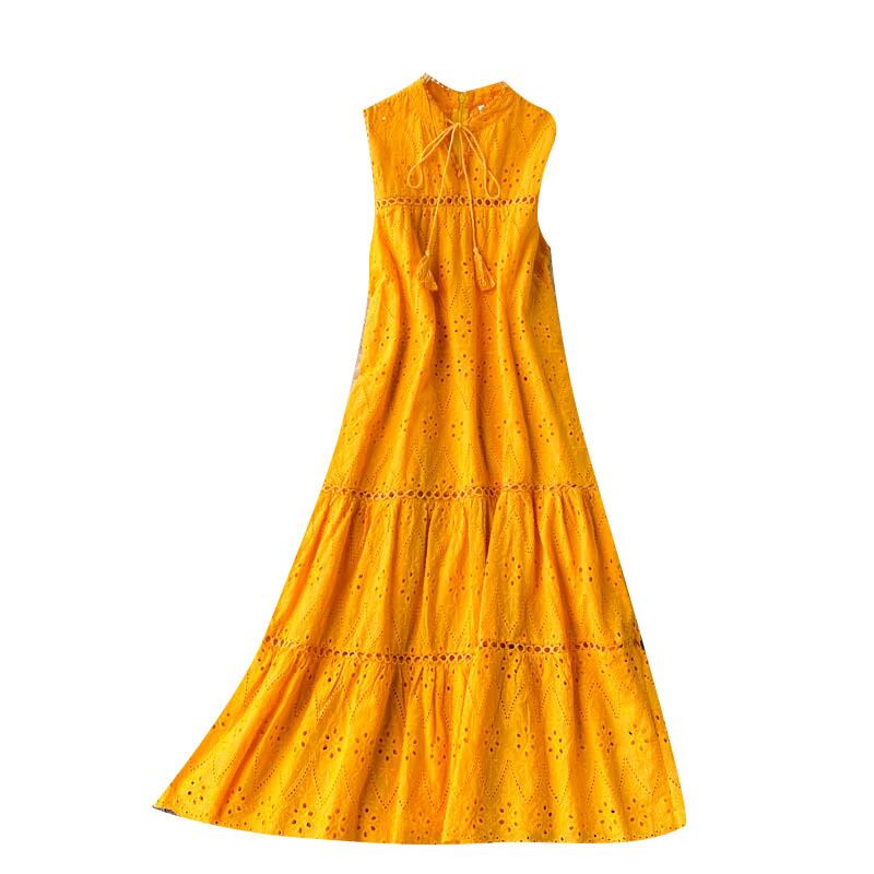 女性ノースリーブ タンク ドレス中空無地 A ライン ドレス夏自由奔放に生きる休暇ミディ ドレス サマー 夏物 Aライン ソリッドカラー Abe43092777926