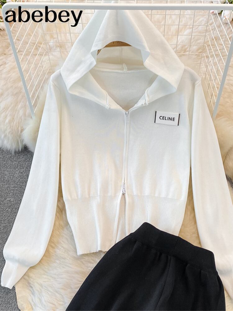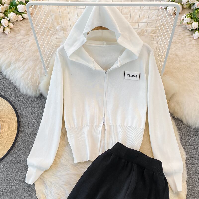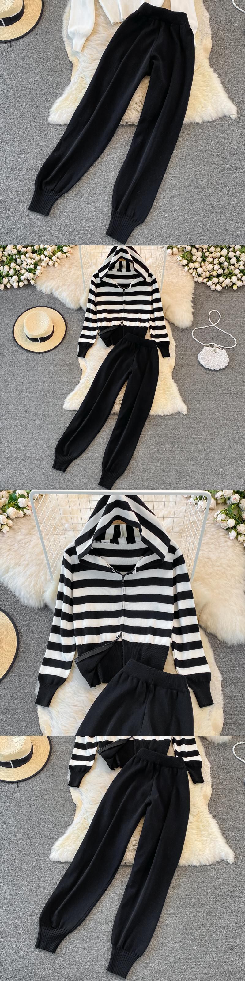 女性の長袖ニット ストリップ セーター + 弾性ウエスト パンツ セット ズボン 2 ピースの衣装 ロング エラスティック 伸縮 Abe53971154489
