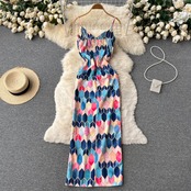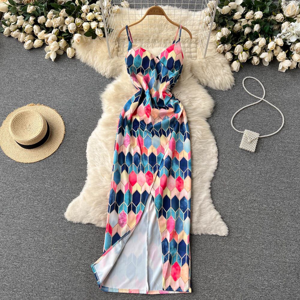 夏の女性サテンシルキースパゲッティストラップスプリットロングドレスノースリーブ背中クラブパーティービーチセクシーな Vestito 2022 サマー 夏物 Abe98564529221