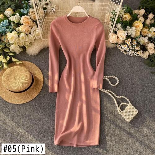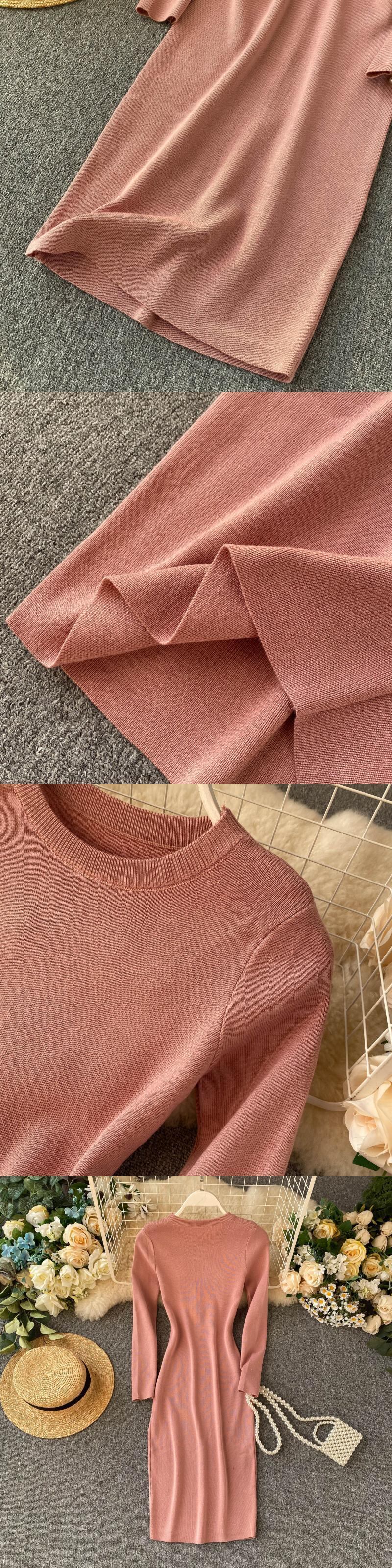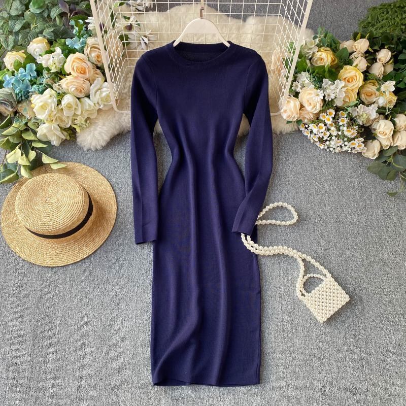 2022 秋冬シンプルな無地長袖スリムニットセータードレス女性 Vestidos PP512 ロング オータム 秋物 ウィンター 冬物 ソリッドカラー Abe85960750724
