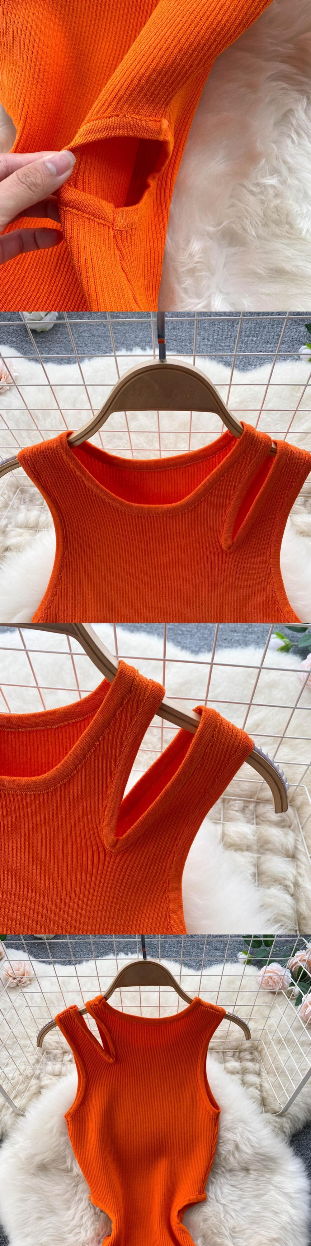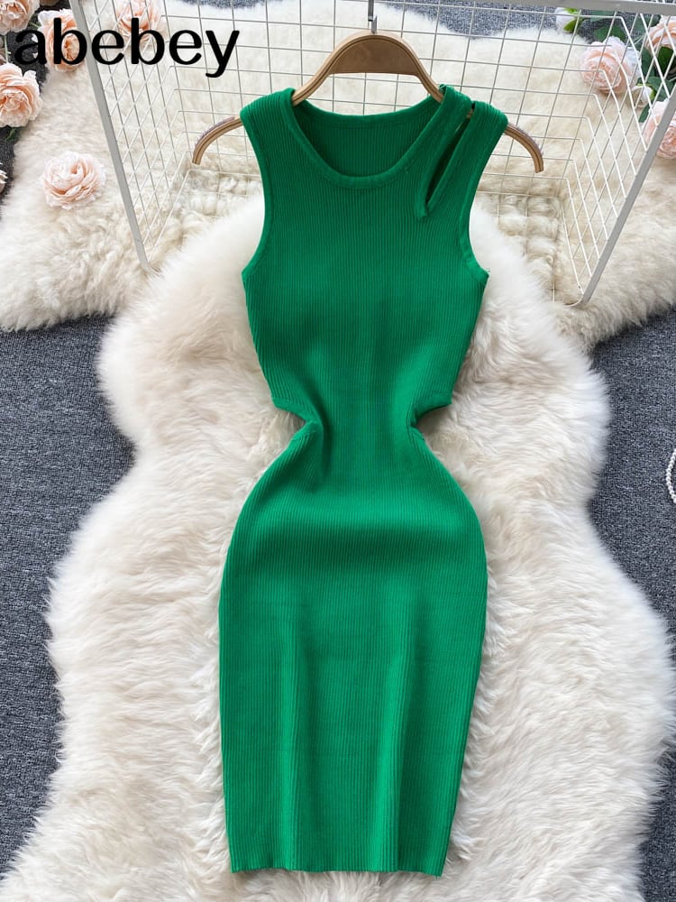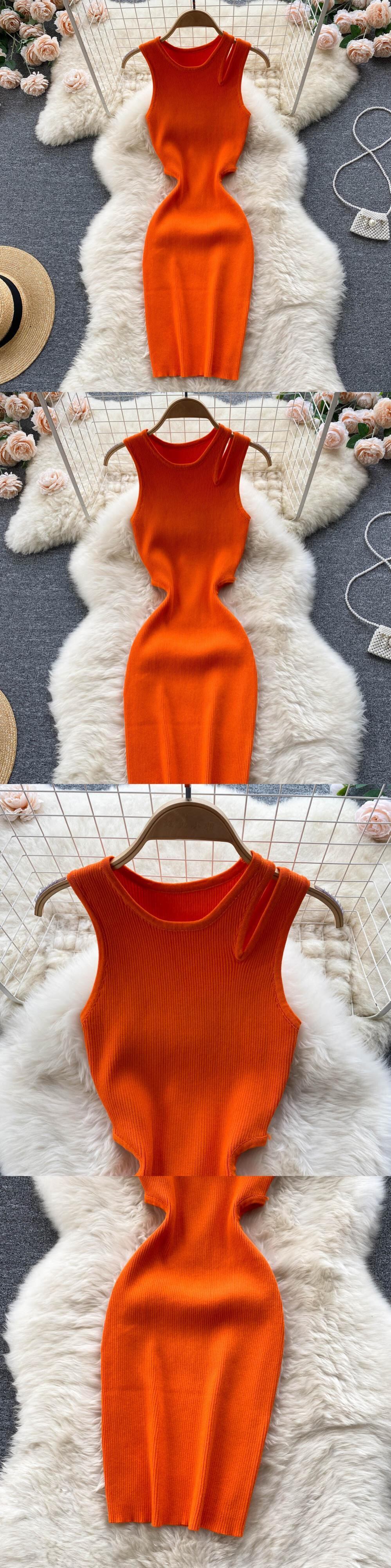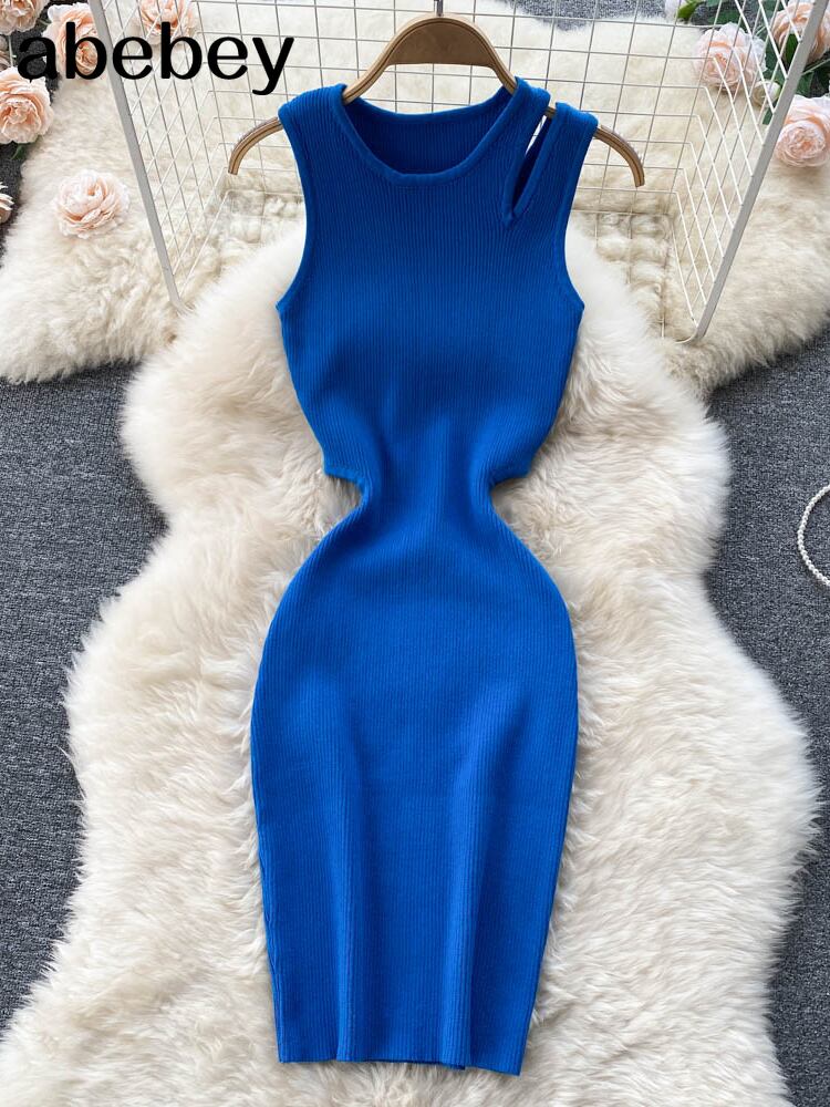 2022 ストラップ女性ニットペンシルドレス O ネックノースリーブ弾性スリムシースドレス夏のストリートショートドレス エラスティック 伸縮 サマー 夏物 Oネック Abe90939113064