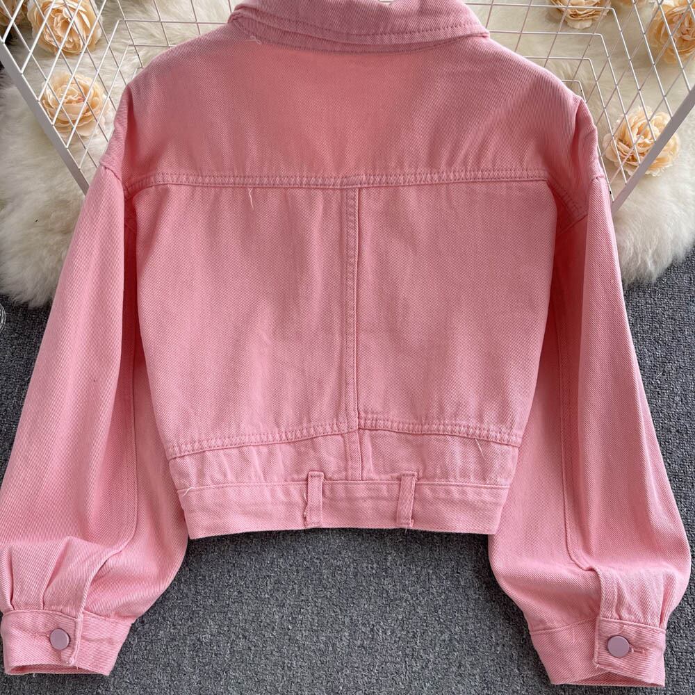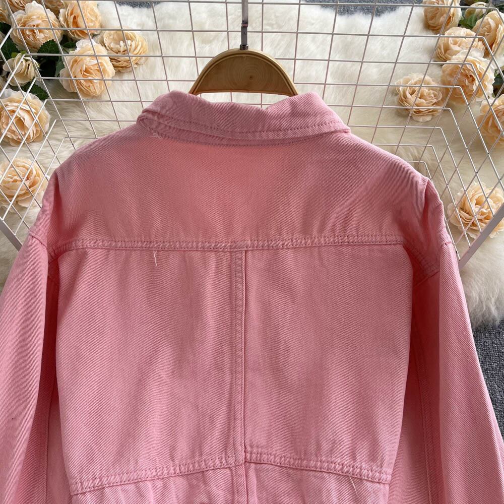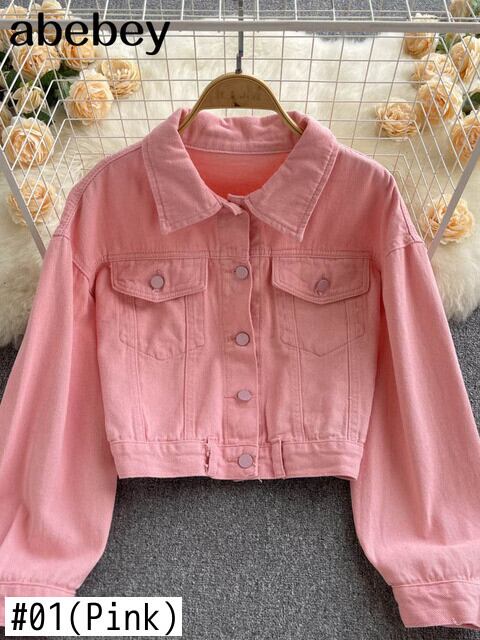 無地 ショート レディース デニムコート 春 秋 ルーズ ジーンズ ジャケット 長袖 学生 クロップド アウター ピンク ロング スプリング 春物 オータム 秋物 ソリッドカラー Abe84496536611