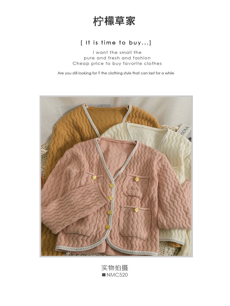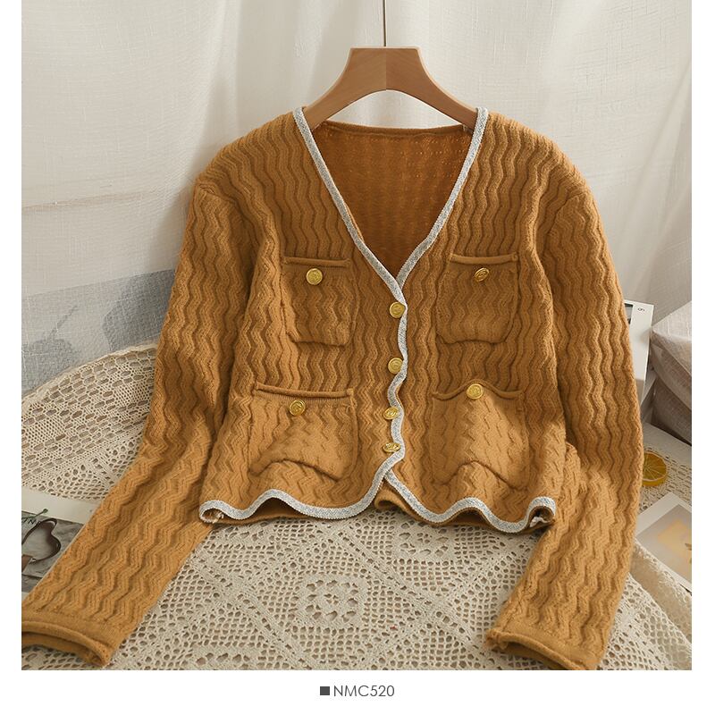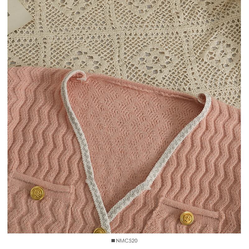 カーディガン女性セーターレトロピンク/ホワイトルーズポケットシングルブレスト V ネックトレンディオールマッチジャンパートップス生き抜く Vネック Abe45799313624