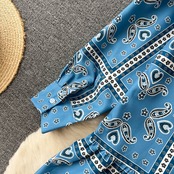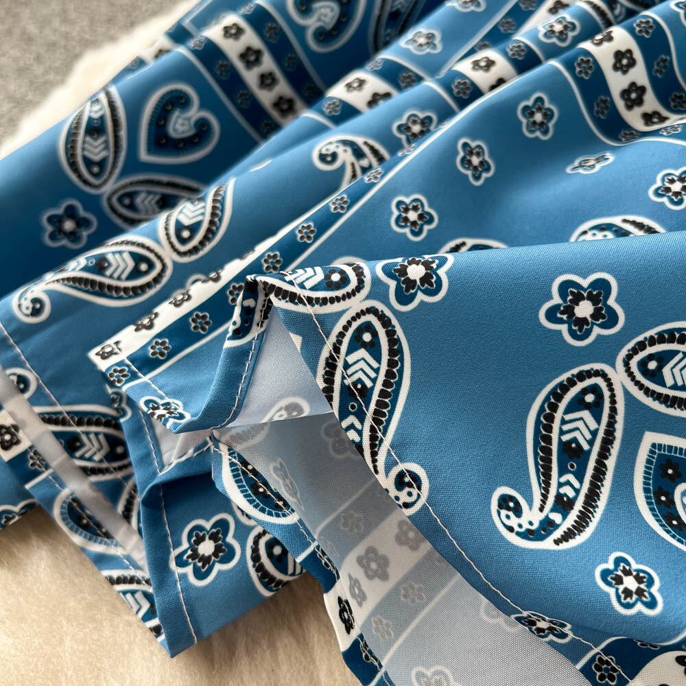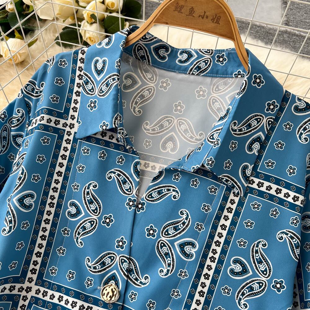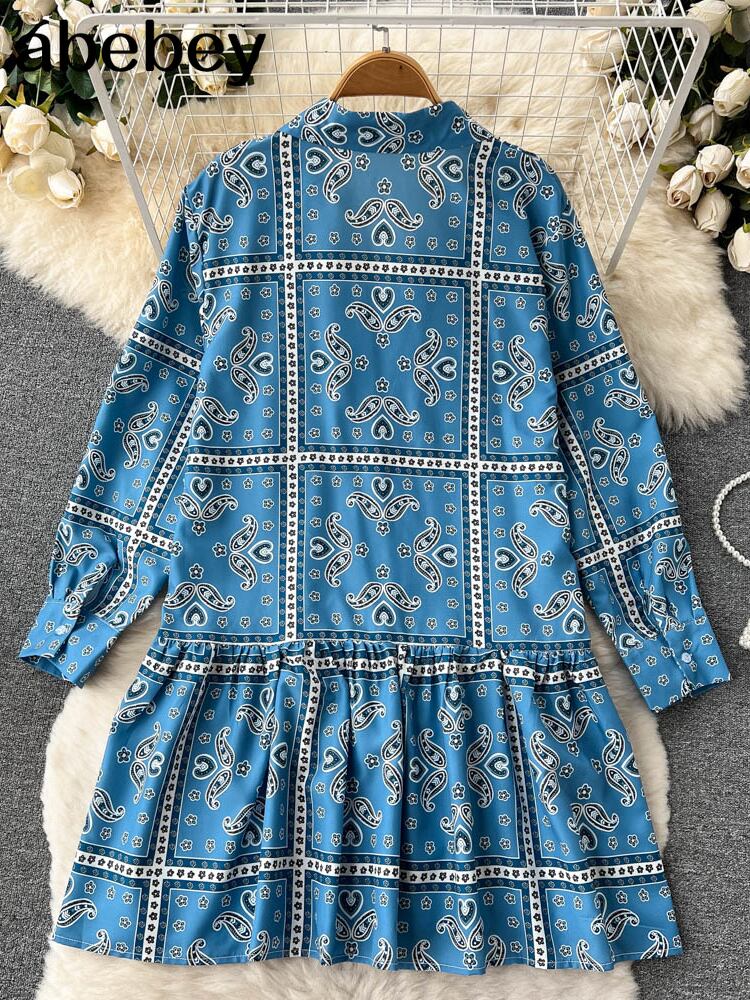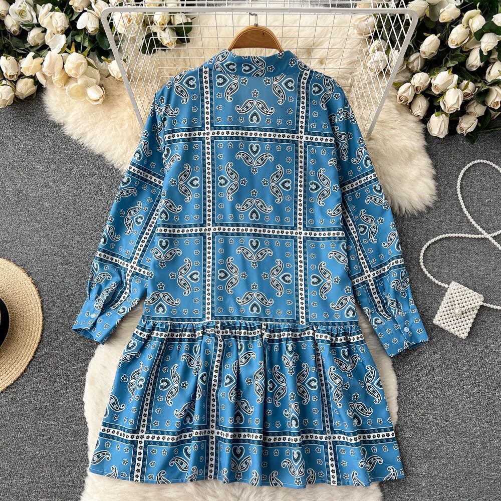 夏クリックポロ襟プリントルーズミニドレス女性フランス七分袖フリルスカートドレス サマー 夏物 Abe12353944319