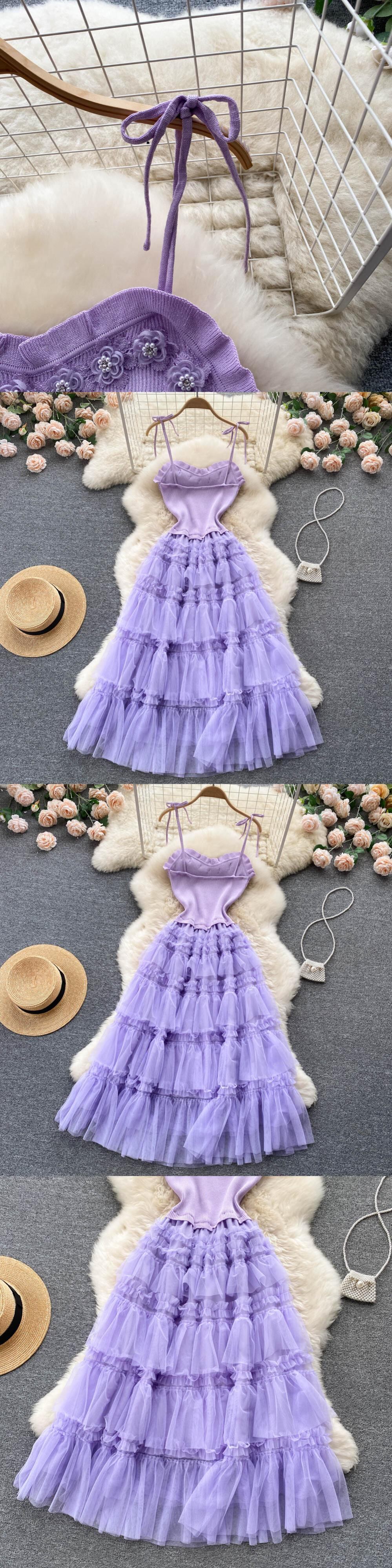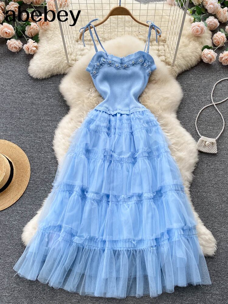 グリーン/ピンク ノースリーブ ドレス女性メッシュ マキシ ロング ドレス A ライン新鮮なシャーリング レトロ ウエスト サンドレス Aライン Abe99310388331