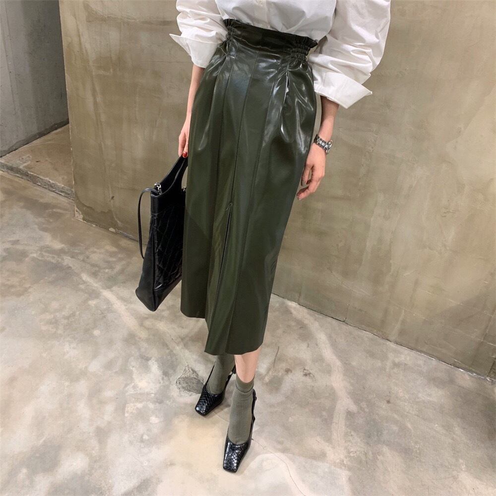 黒固体セクシーな mal PU レザーロングスカート女性 2022 秋春ウエストオフィスペンシルスカート ブラック スプリング 春物 オータム 秋物 ソリッドカラー 会社 学校 通勤や通学にも Abe40476604317