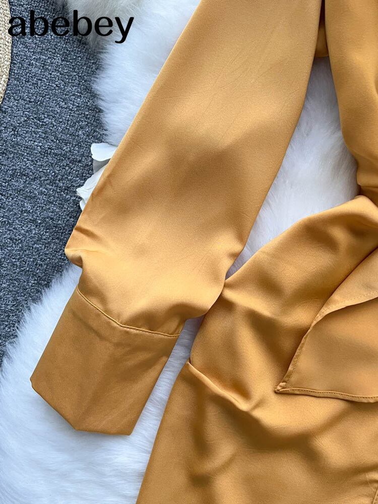 グリーン/ブラック/レッド女性シックなボタンアップ ドレープ ミニ シャツ ドレス長袖ネクタイ弓ドレス Vestidos ロング リボン Abe18501666991