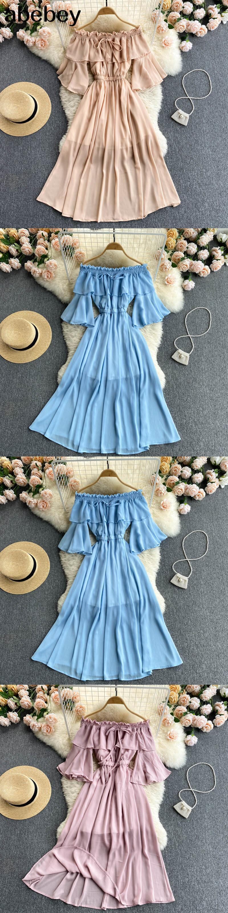 女性オフショルダー無地ドレスセクシーなスラッシュネック半袖 A ラインシャーリングドレス夏のボヘミアンビーチドレス ショート ハーフスリーブ サマー 夏物 Aライン ソリッドカラー Abe44106160322