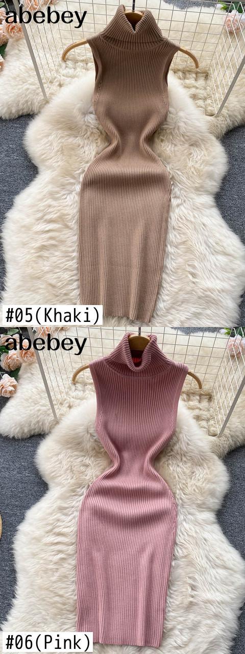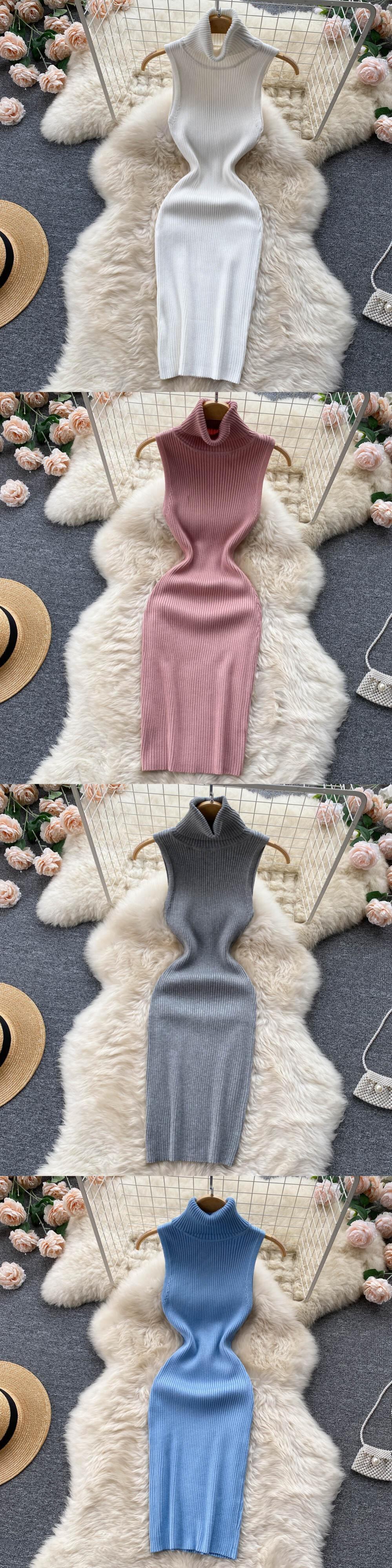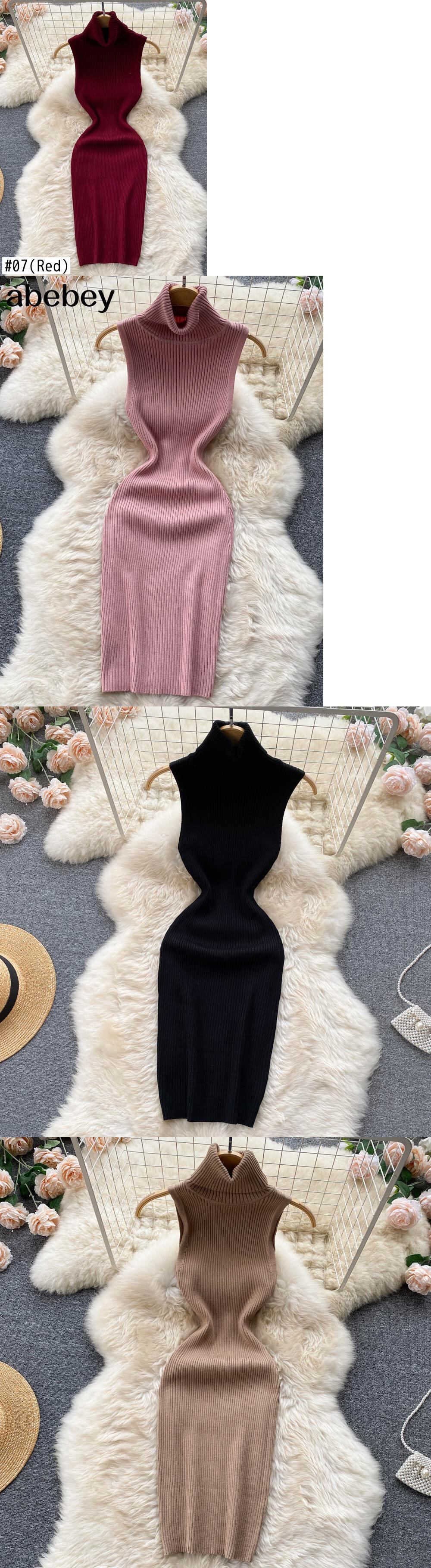 女性の夏のニットドレス 2022 タートルネックネックストリートスリムミディショートサンドレス弾性ウエストセクシーなボディコンドレス エラスティック 伸縮 サマー 夏物 Abe13713924367