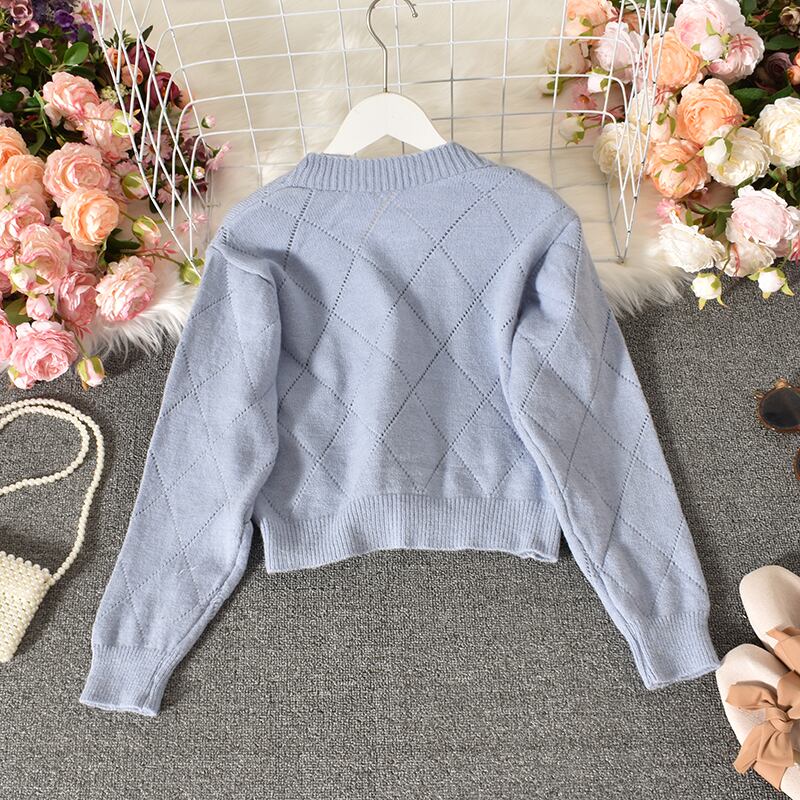 花刺繍女性セーターコート長袖 V ネック中空アウトニット 2022 因果ショートカーディガン 4D245 ロング 花柄 Vネック Abe66135055207
