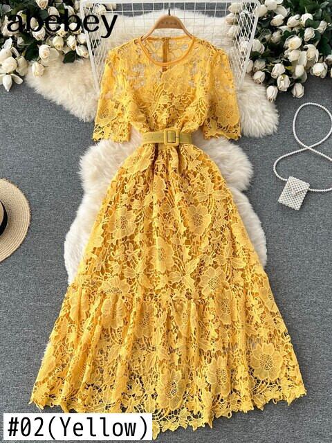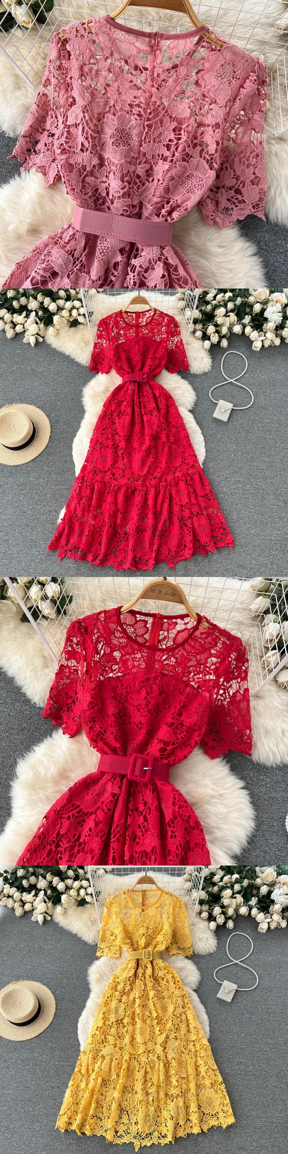 2022 高級花 A ラインドレス女性の半袖スリムメッシュ刺繍夏パーティーマキシロング Vestidos ショート レッド ハーフスリーブ サマー 夏物 Aライン フラワーデザイン Abe93656913492
