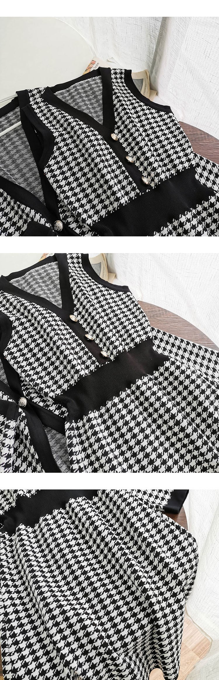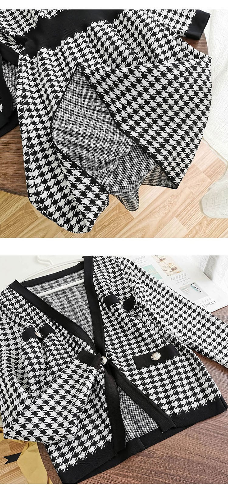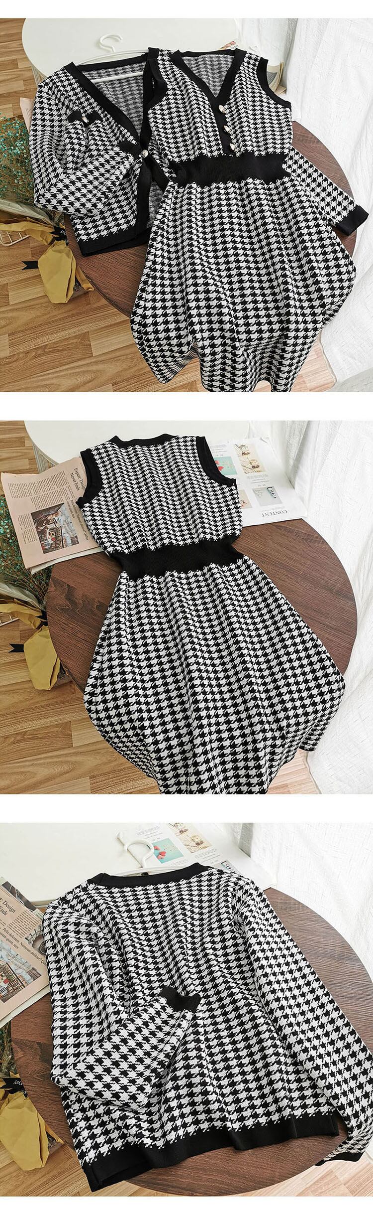 2022春秋千鳥格子長袖ニットジャケット+ニットワンピースセーターセットカーディガンコート2点セットelegan ロング スプリング 春物 オータム 秋物 Abe2466300060