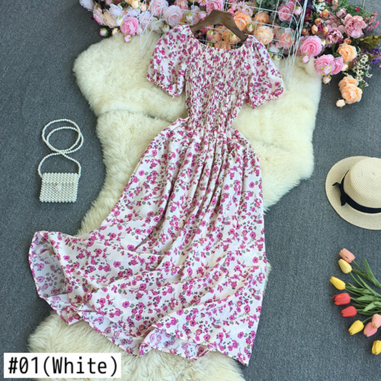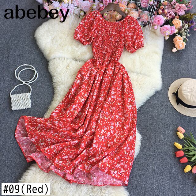 2022 春秋スラッシュカラー半袖ドレスハイウエストプリーツウエスト花柄ミッドレングス A ラインドレス ハイウェスト ショート ハーフスリーブ スプリング 春物 オータム 秋物 Aライン Abe38846962715