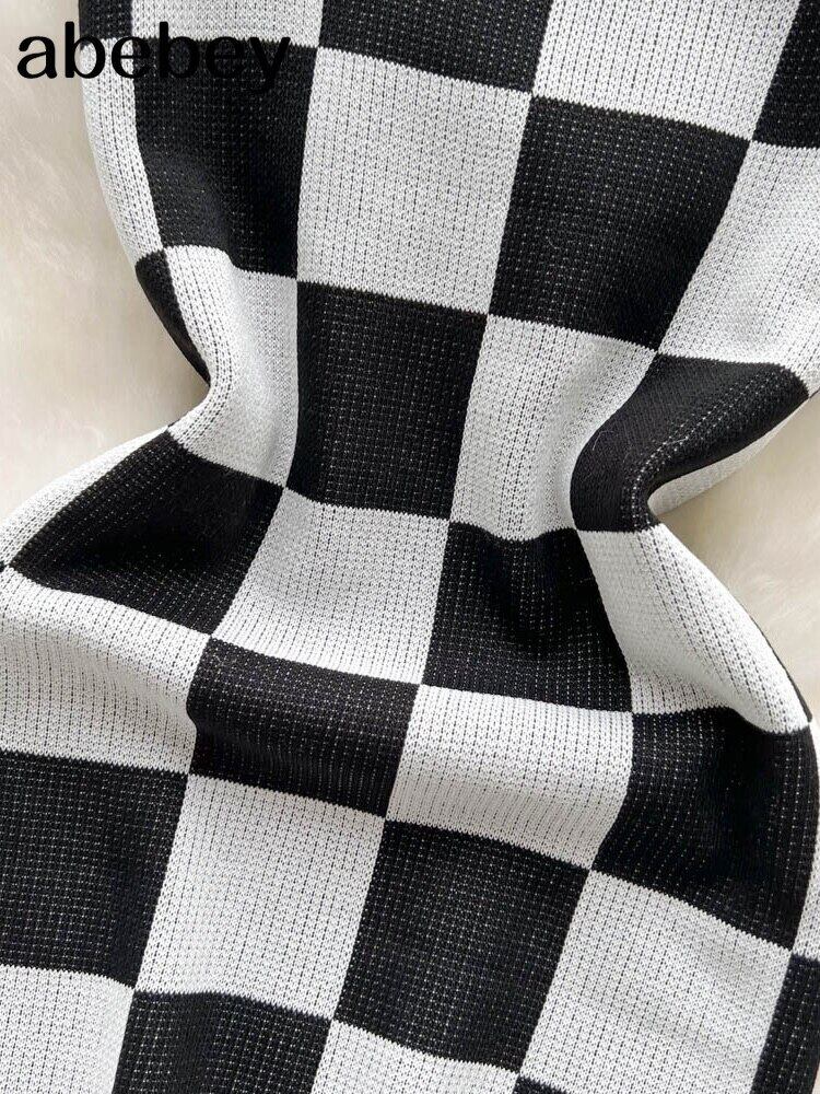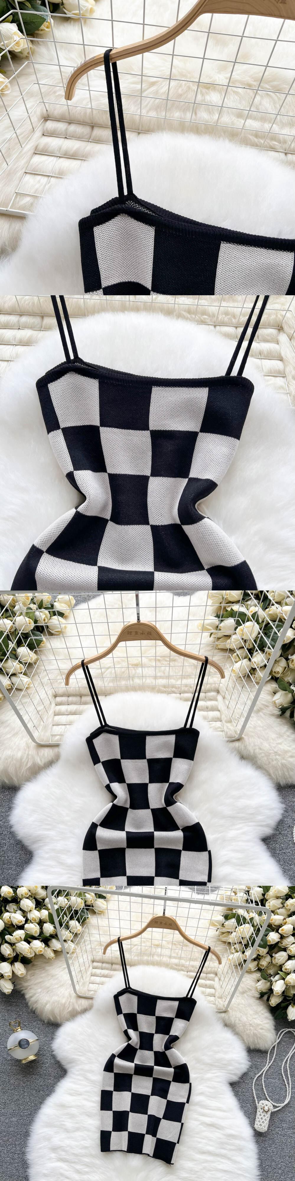 2022 ニットチェック柄ミニセクシーなボディコン女性ドレス春スパゲッティストラップサイドショートドレスシックなセータークラブパーティードレス スプリング 春物 Abe15760209250