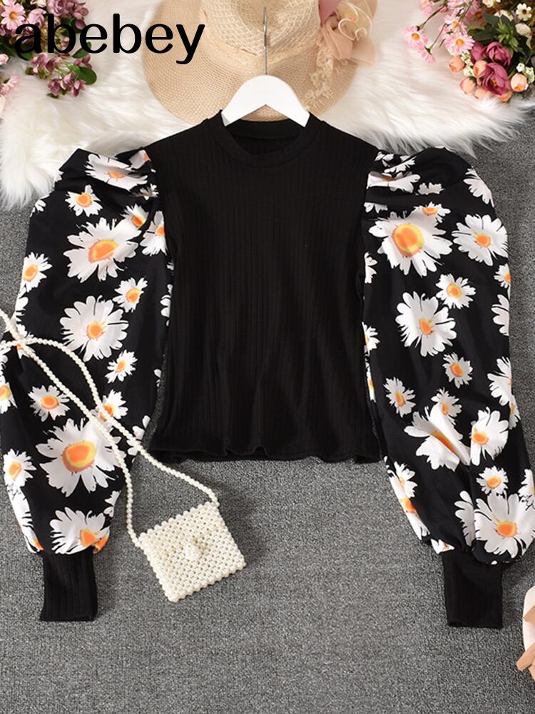 秋ブラウス製品バブルシャツスリーブステッチフェイク 2 シャツ花柄スリム痩身ジャケット女性 2020 オータム 秋物 Abe88733359179