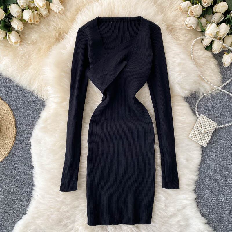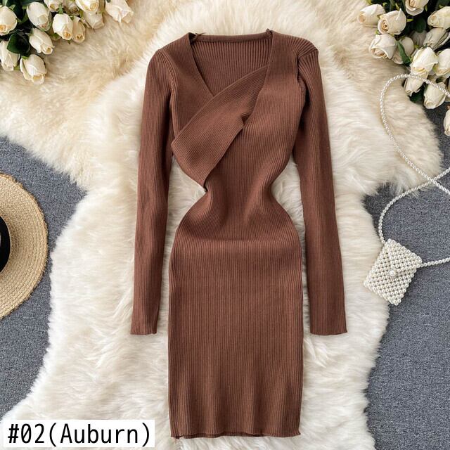 女性ニットペンシルドレス長袖 V ネック弾性スリムドレス 2022 秋冬ボディコン暖かいセータードレス ロング エラスティック 伸縮 オータム 秋物 ウィンター 冬物 Vネック Abe11353636305