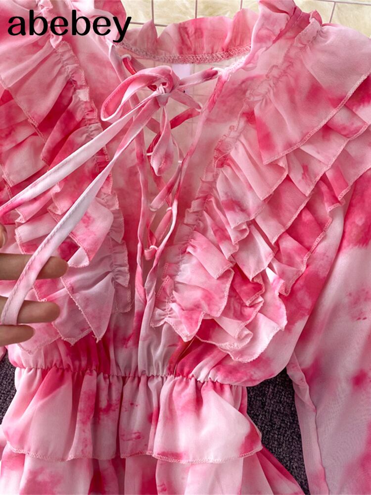 絞り染め花柄ルーズスタイルミニドレス女性ランタン長袖パーティードレス日服春 2022 ロング スプリング 春物 Abe19734441956