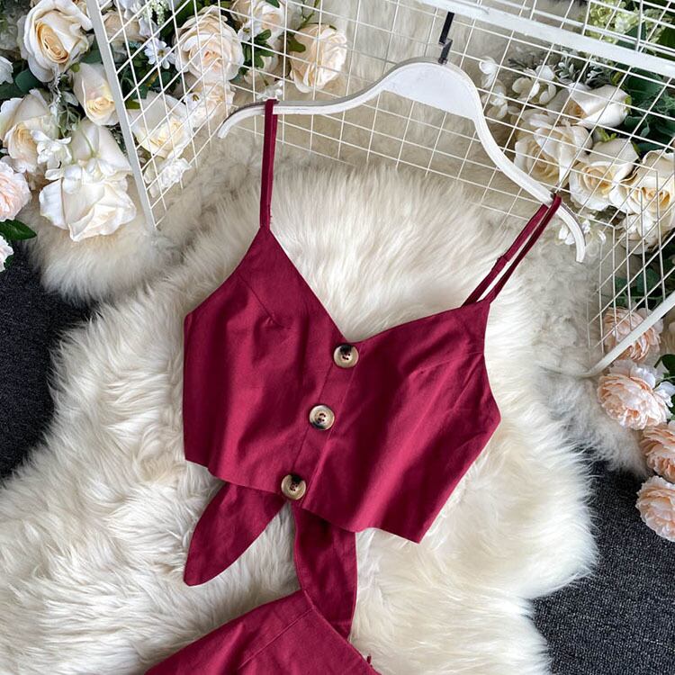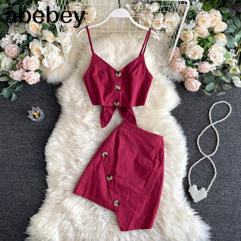 2022 インセクシーなホリデースタイルのスーツショートスカートツーピースセットホルターキャミソール + ハイウエストスカート女性 ハイウェスト Abe95765097445