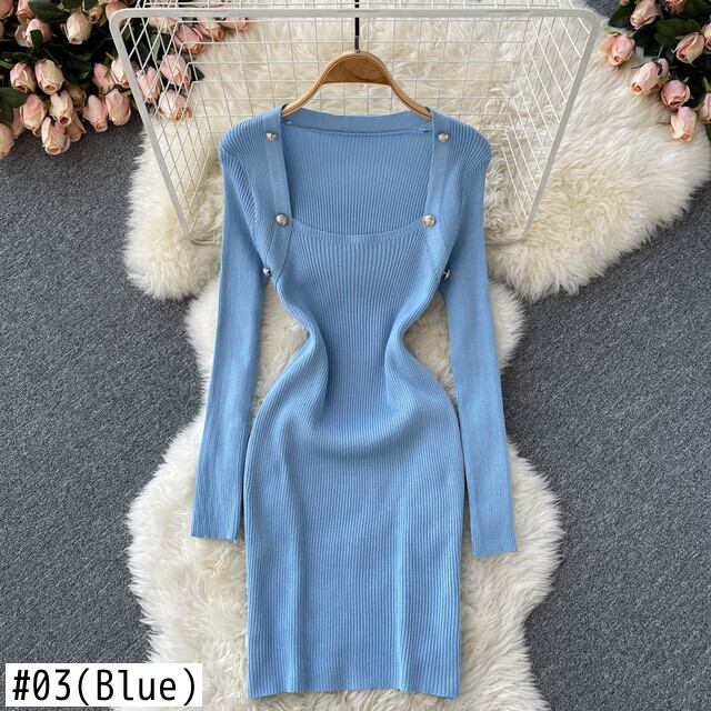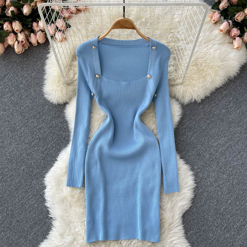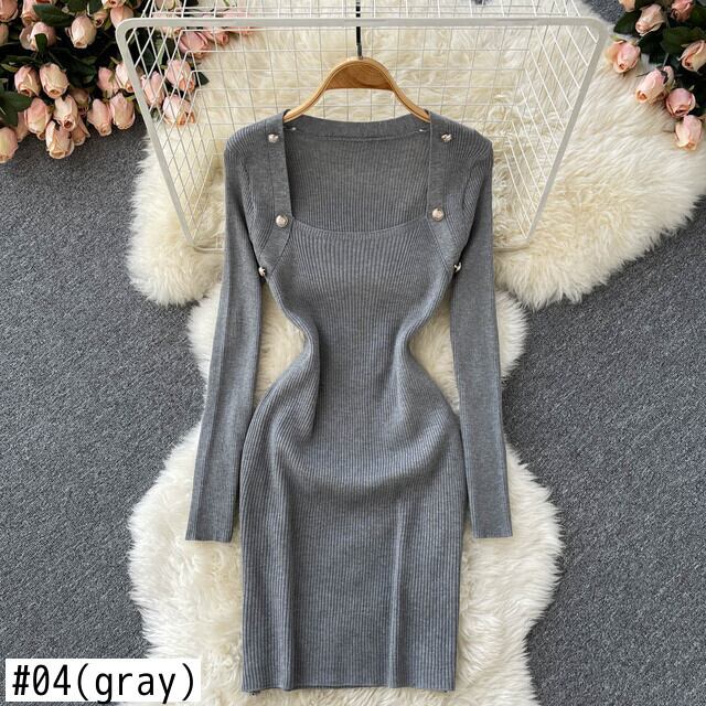 セクシーなボディコン ニット ドレス レトロ スクエア カラー長袖ペンシル ドレス春セクシーな弾性スリム セーター ドレス ロング エラスティック 伸縮 スプリング 春物 スクウェア Abe19565003232