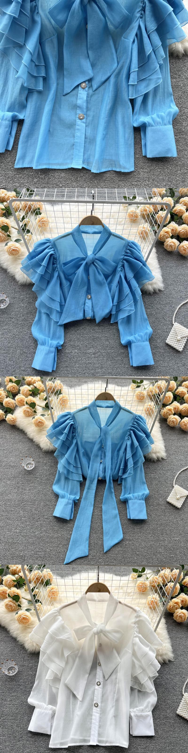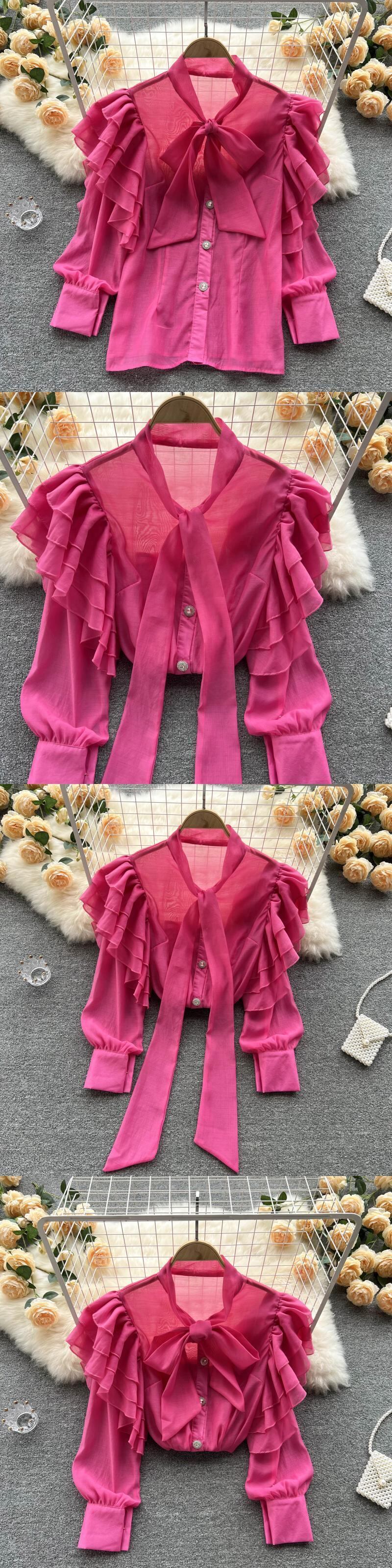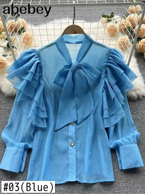 シャツ長袖フリルシフォンブラウス女性レディースブラウスオフィストップス女性トップス 2022 ロング 会社 学校 通勤や通学にも Abe41353051833
