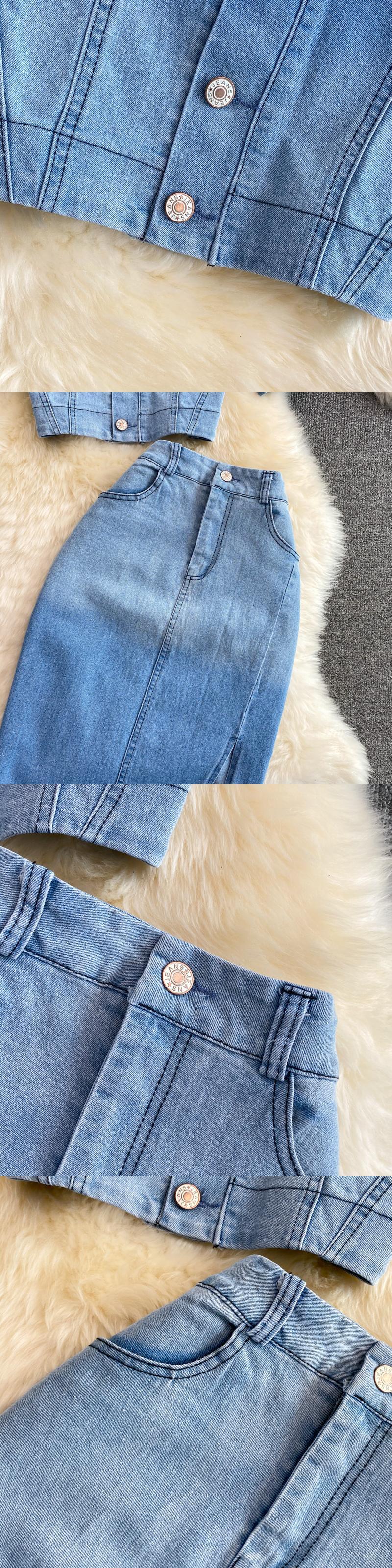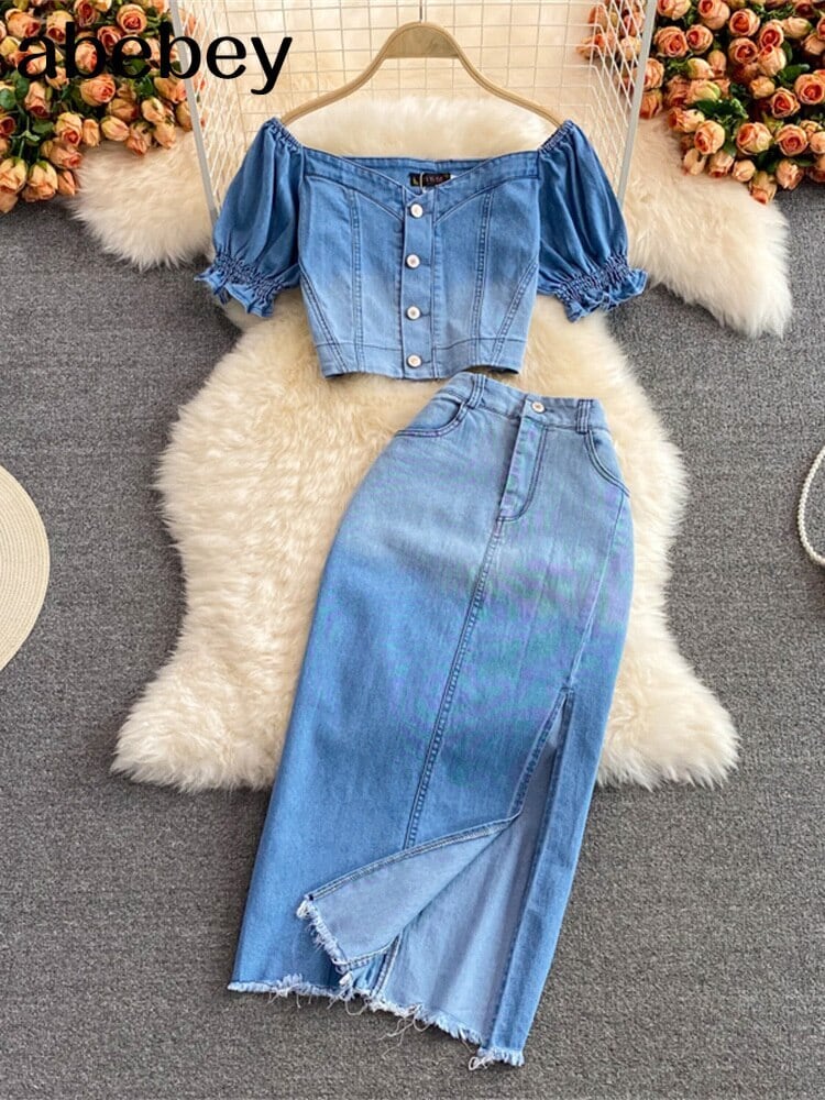 2022 夏自由奔放に生きるビーチホリデーツーピースセット女性スカートスーツセクシーなデニムトップとウエストボディコンロングスカート衣装 サマー 夏物 Abe75541337705
