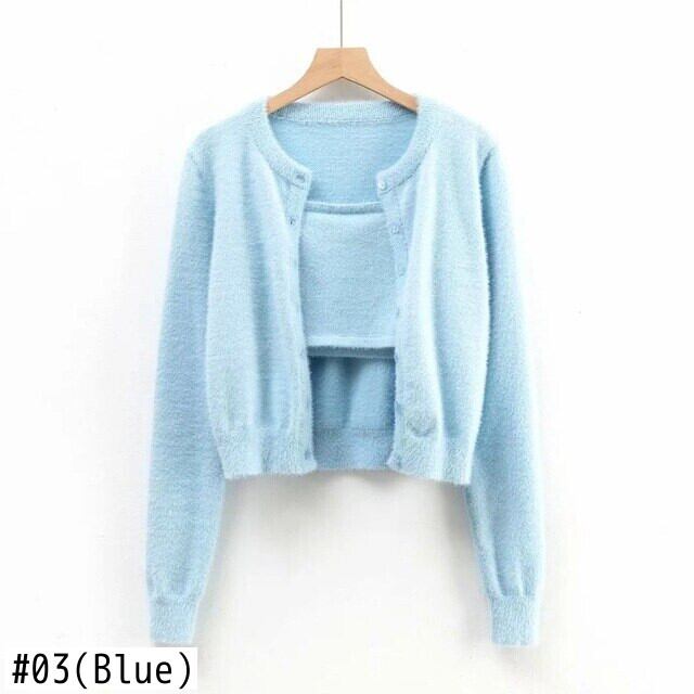 2022 春モヘアカーディガンセット基本的なスリングベスト + Logn スリーブ O ネックシングルブレストコート女性衣装 6F130 スプリング 春物 Oネック Abe62375748756