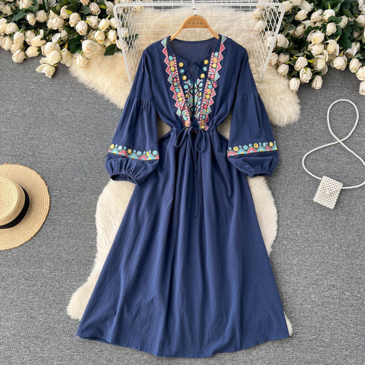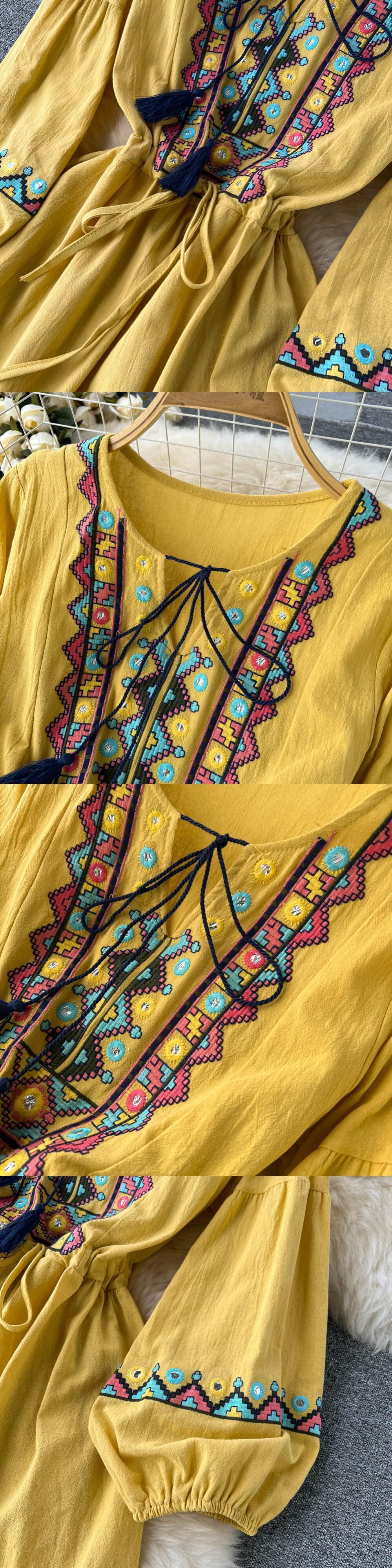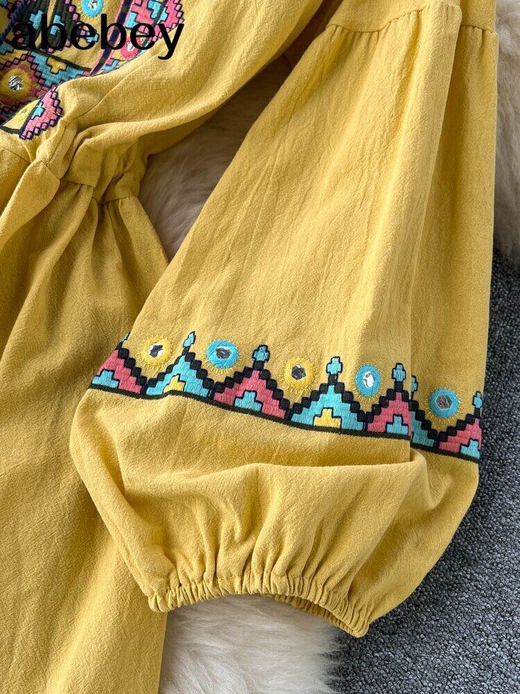 2022 女性のレトロなフレアスリーブビーチ刺繍チュニックドレス夏 V ネック自由奔放に生きるホリデードレスルーズ Vestidos サマー 夏物 Vネック Abe98385202434