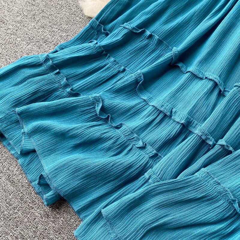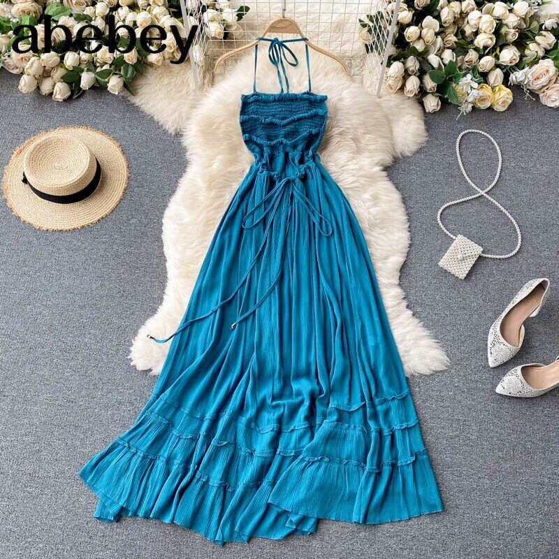 セクシーな背中の開いたホルター ドレス女性ノースリーブ フリル a ライン ドレス夏のボヘミアン休暇ビーチ ドレス ラッフル サマー 夏物 Aライン Abe77539626606