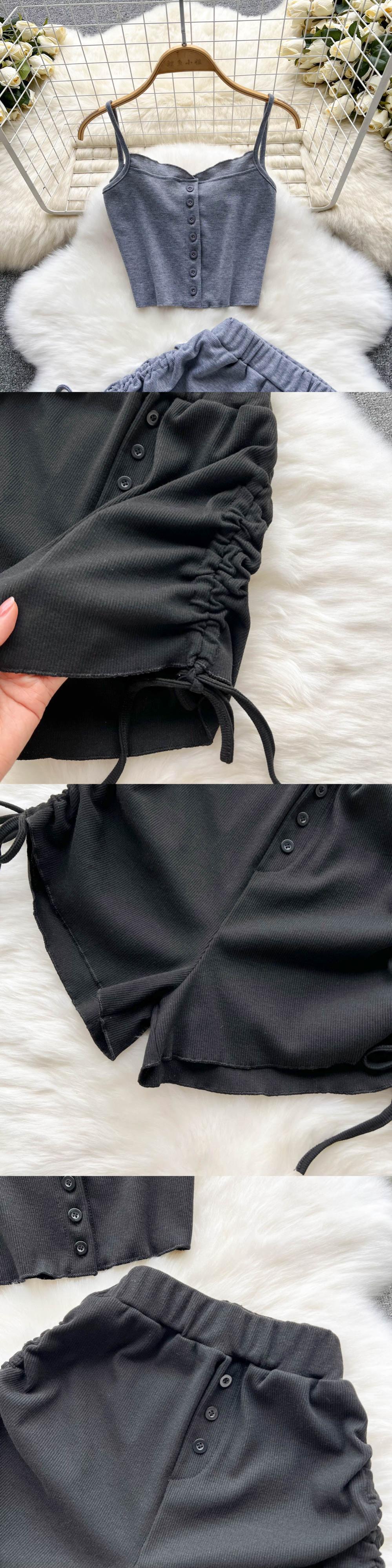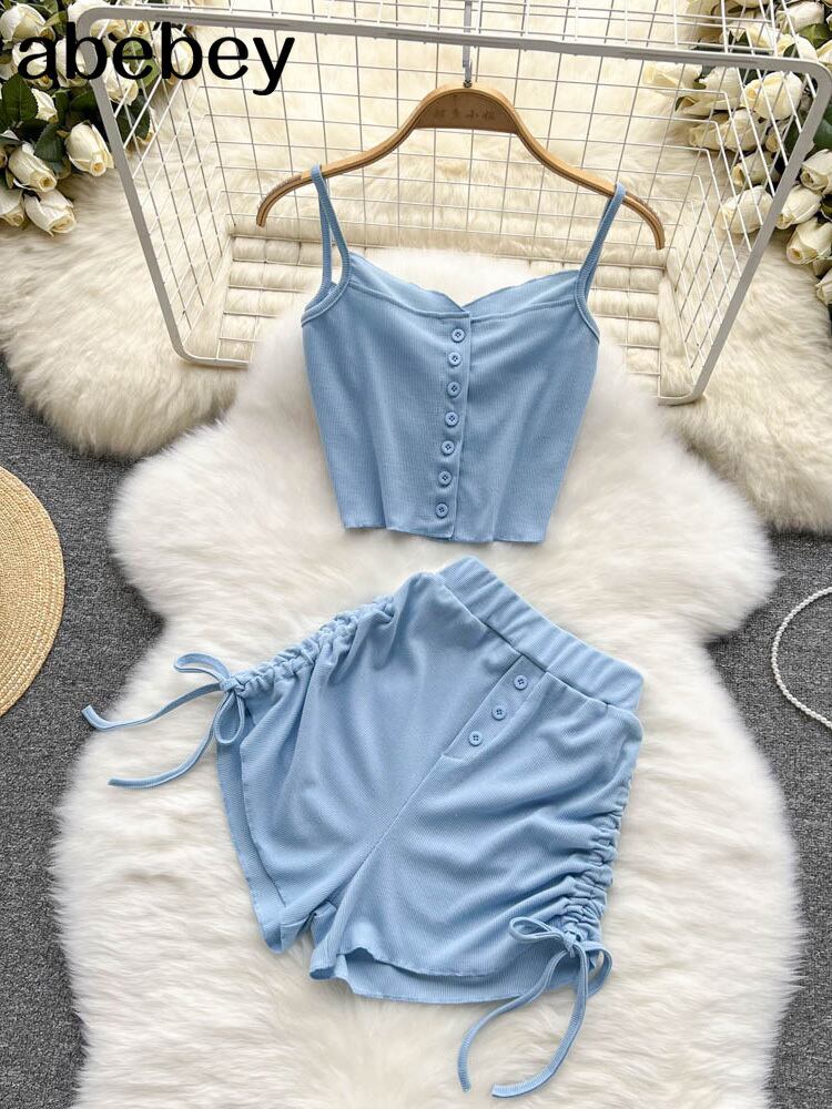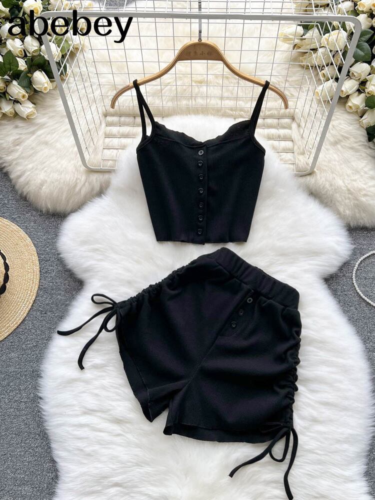 女性春夏 2022 スーツ無地 2 個セットセクシーなスリムチューブトップとウエストショーツトラックスーツショーツとベスト スプリング 春物 サマー 夏物 ブルマー ソリッドカラー Abe68331056881