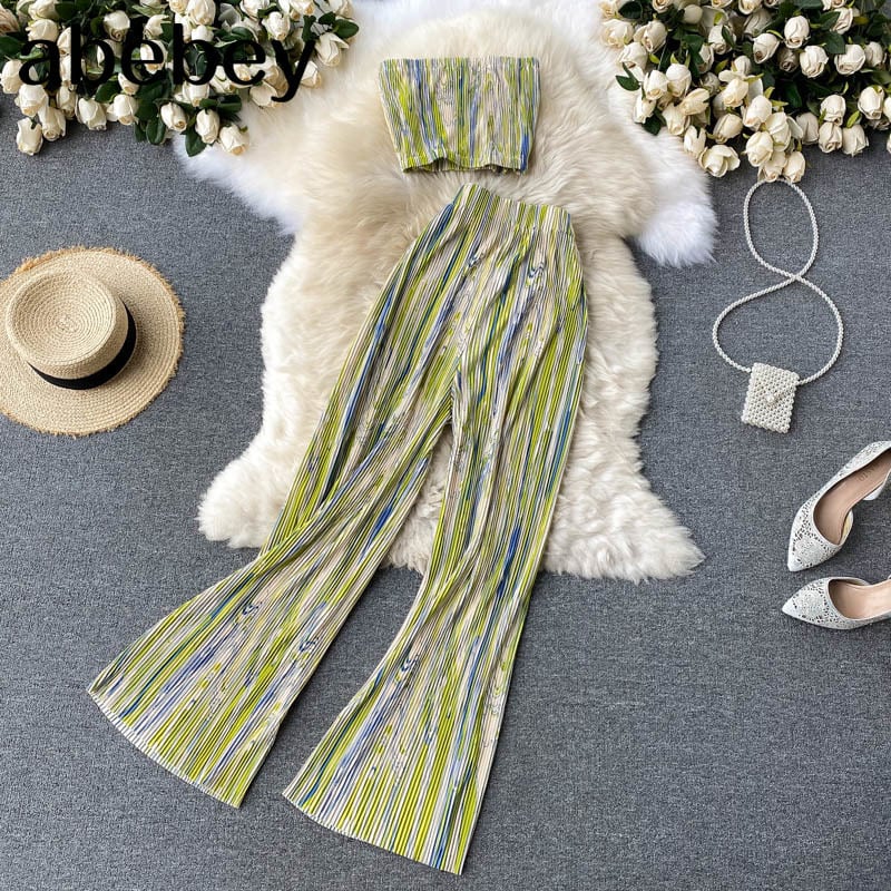 女性の夏の自由奔放に生きる花ビーチセットセクシーなスラッシュネックオフショルダーショートトップス + ウエストレッグロングパンツツーピーススーツ サマー 夏物 花柄 Abe35783961958
