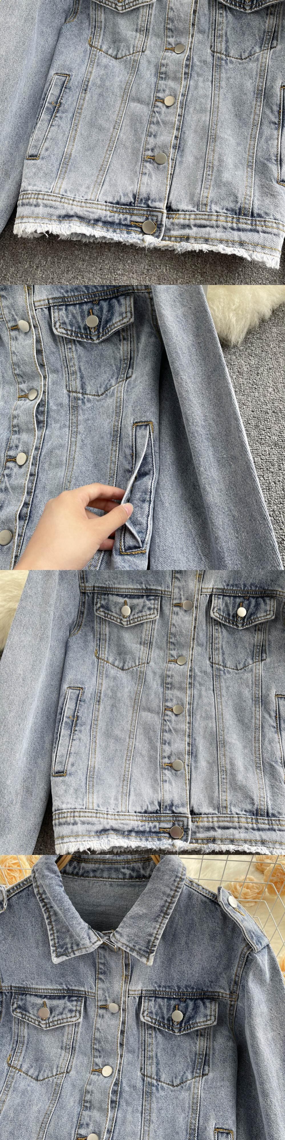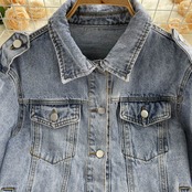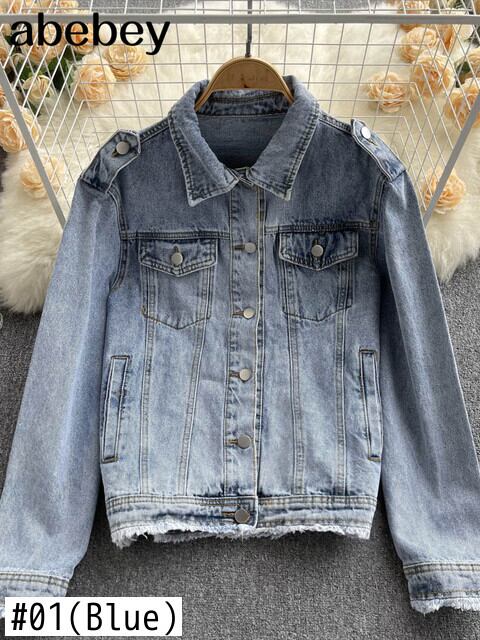 2022 コットンデニムジャケット女性無地ラペルシングルブレストジーンズジャケット秋ルーズフィットデニムジャケット オータム 秋物 ソリッドカラー Abe73528594652