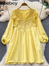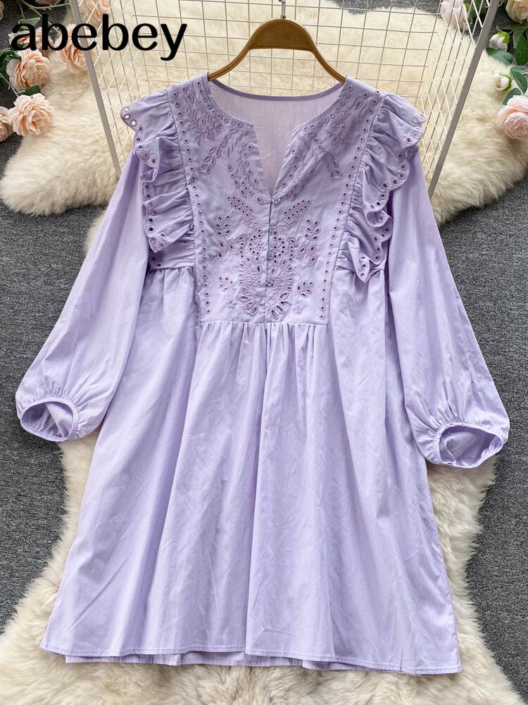 刺繍ボヘミアン女性ドレス長袖ソリッドレトロ O ネック 2022 ルーズミディドレス ロング Oネック ソリッドカラー Abe62024703996
