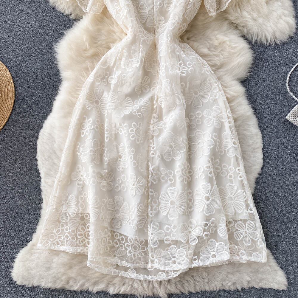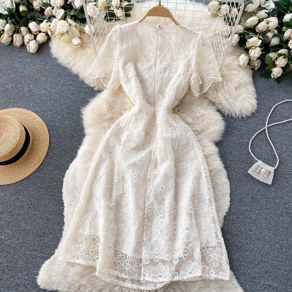 女性の滑走路のレースの花の刺繍 A ラインの高級パーティーディナードレスレディレトロローブ Aライン フラワーデザイン Abe92350303190