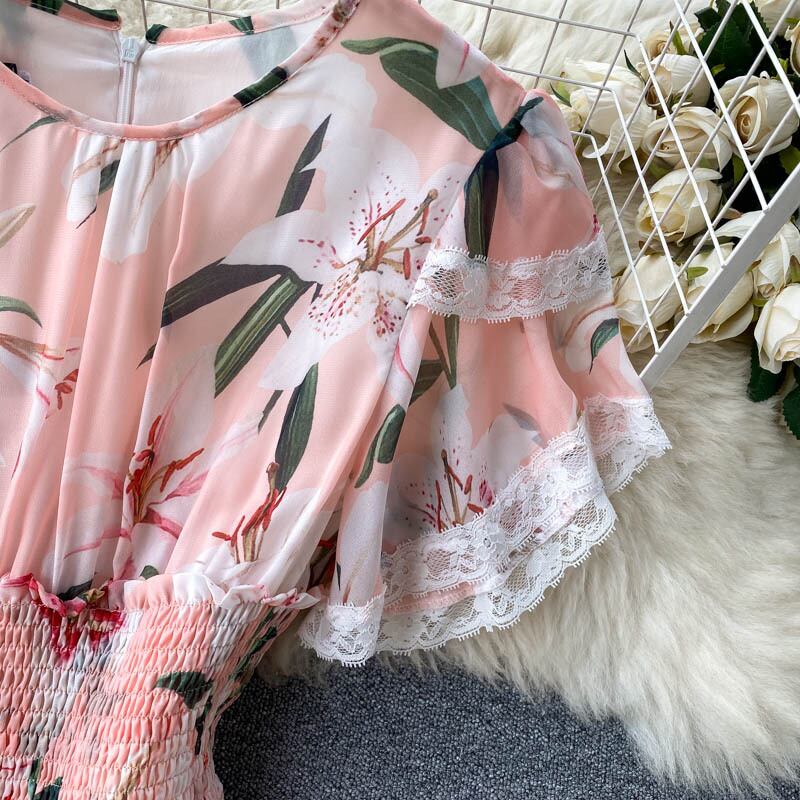 女性のプリントドレス O ネック Fiying スリーブ A ラインシフォンドレス夏ボヘミアンプリントホリデーミディドレス サマー 夏物 Oネック Aライン Abe9022709670