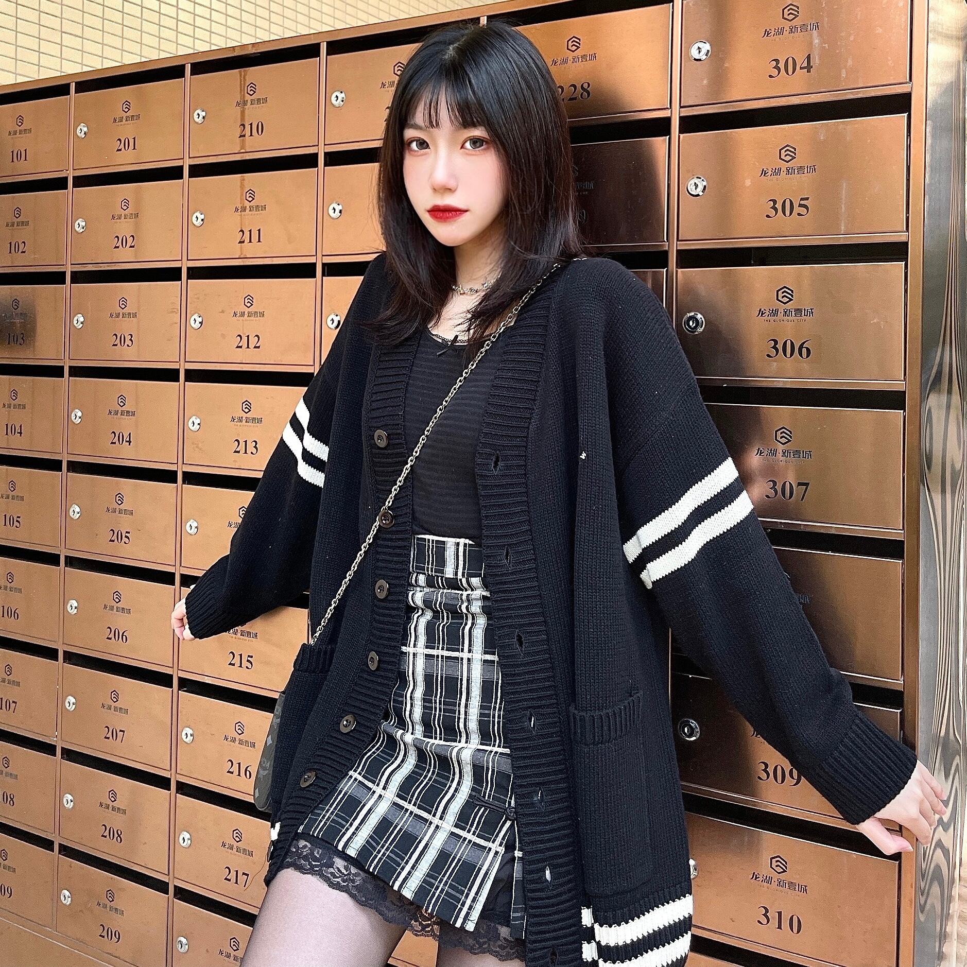 セーターの女 ストリート カーディガン オータム 秋物 ウィンター 冬物 Vネック ストライプ Abe69599318939