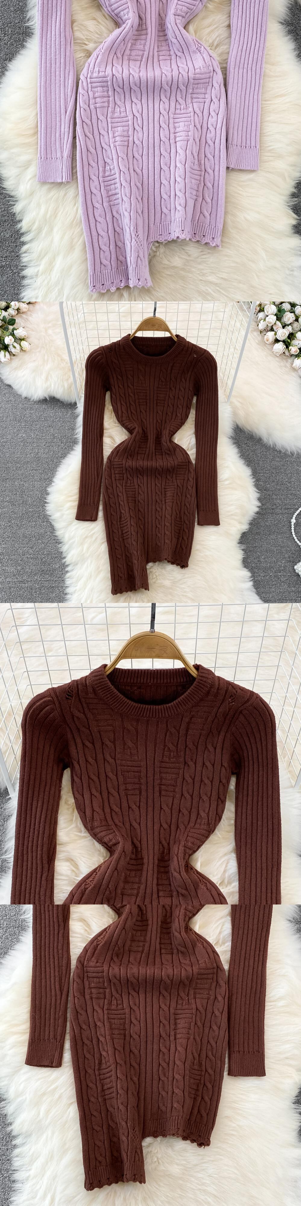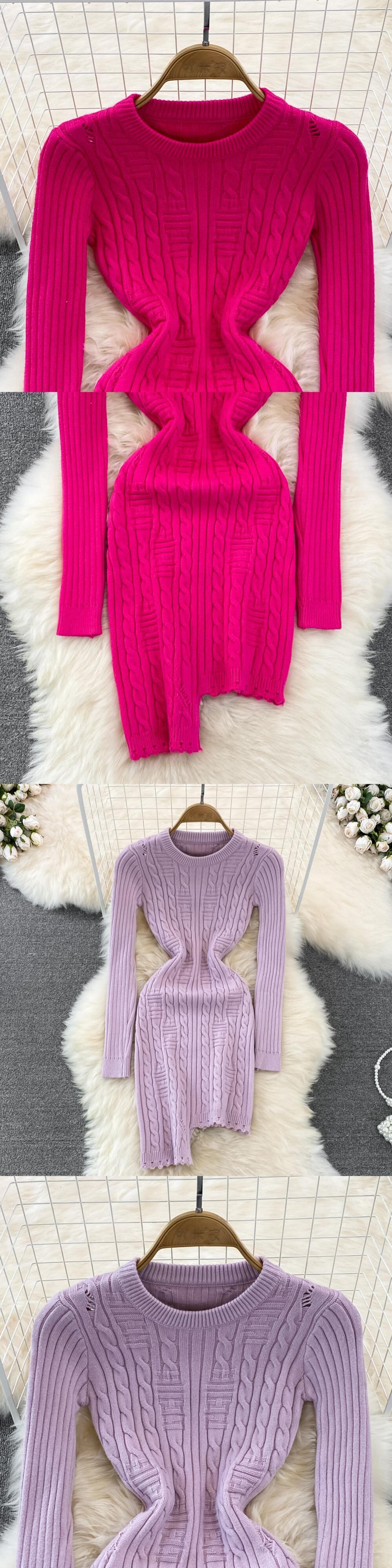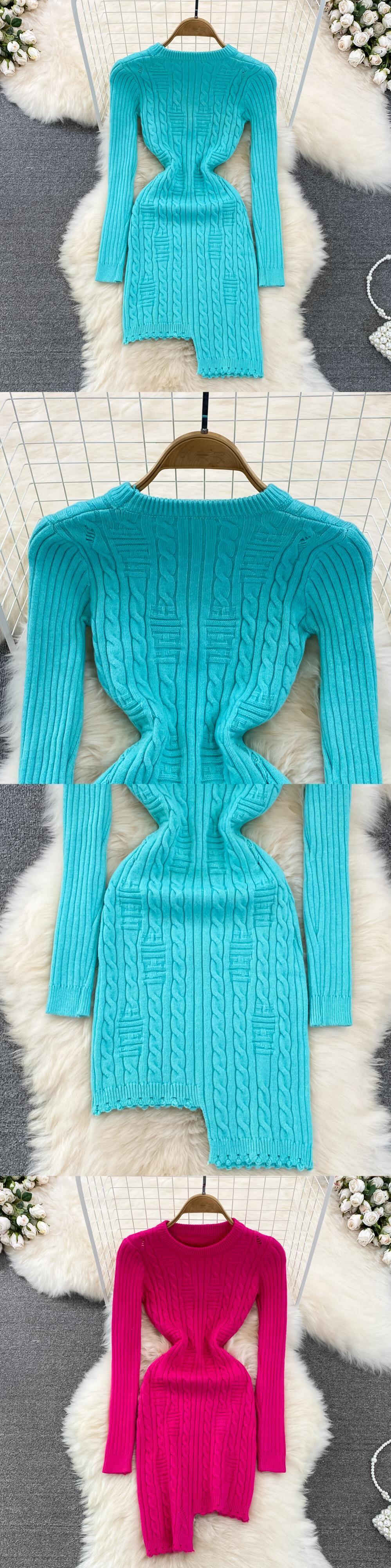 不規則なセクシーなニット ドレス長袖スリム O ネック パーティー ボディコン セーター ミディ ドレス ロング Oネック Abe54921232080