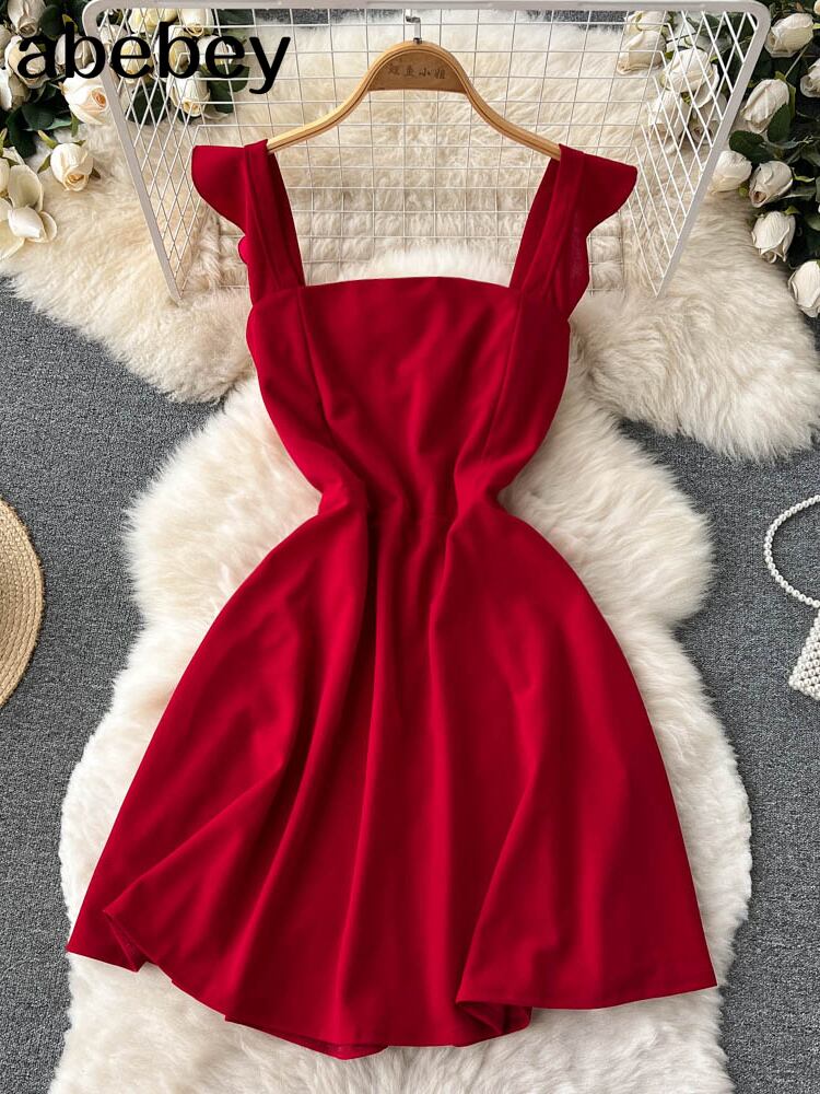 女性のベストドレス夏ノースリーブミニフリルドレスグリーンウエストショートウエディングドレスビーチ Vestidos サマー 夏物 Abe80885495413