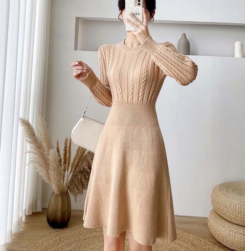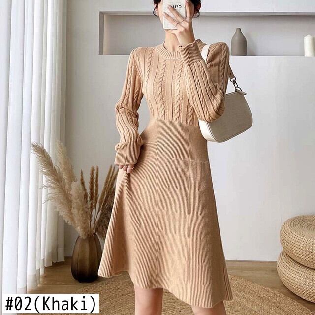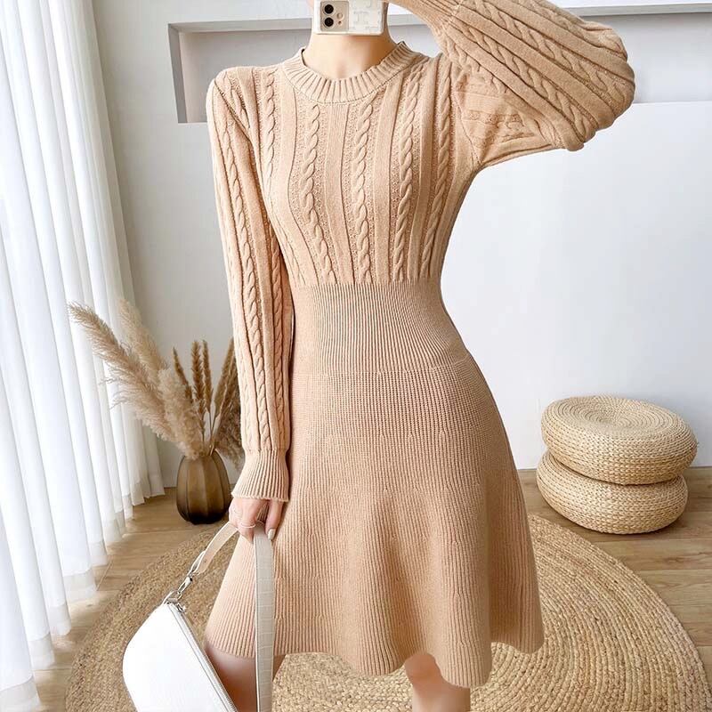 2021 シックな冬のニット ドレス ストレッチ A ライン クリスマス ドレス暖かい長袖セーター ドレス ロング ウィンター 冬物 Aライン Rhc78889097385