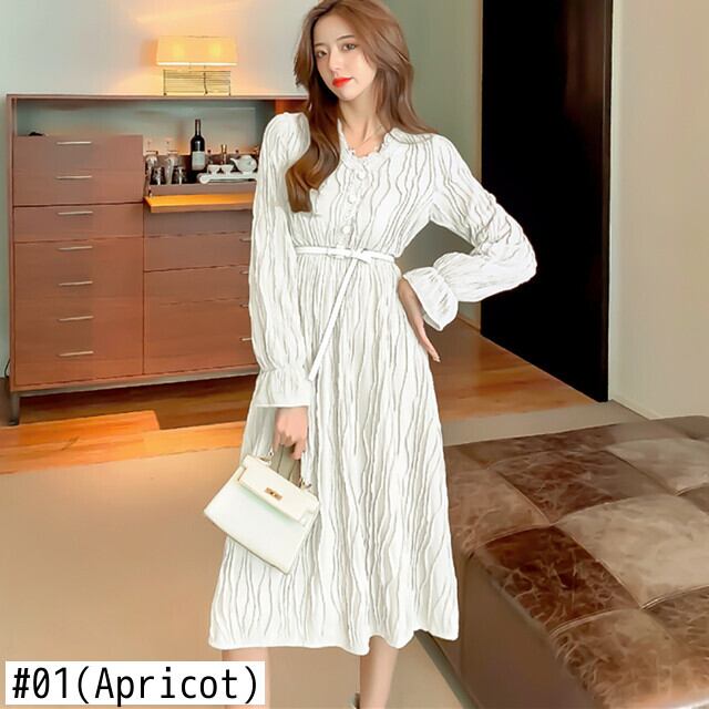 2021 フレンチスタイルの春の女性のドレスミディアムレングススタイル V ネック小帯スリムドレスグレースフォールド美的デザイン スプリング 春物 Vネック Rhc297580797