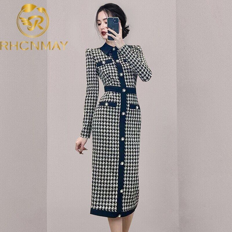 シングルブレストボタンアップ女性ドレスセクシーなニットボディコンミディロング冬秋長袖ドレスローブ オータム 秋物 ウィンター 冬物 Rhc7900193712