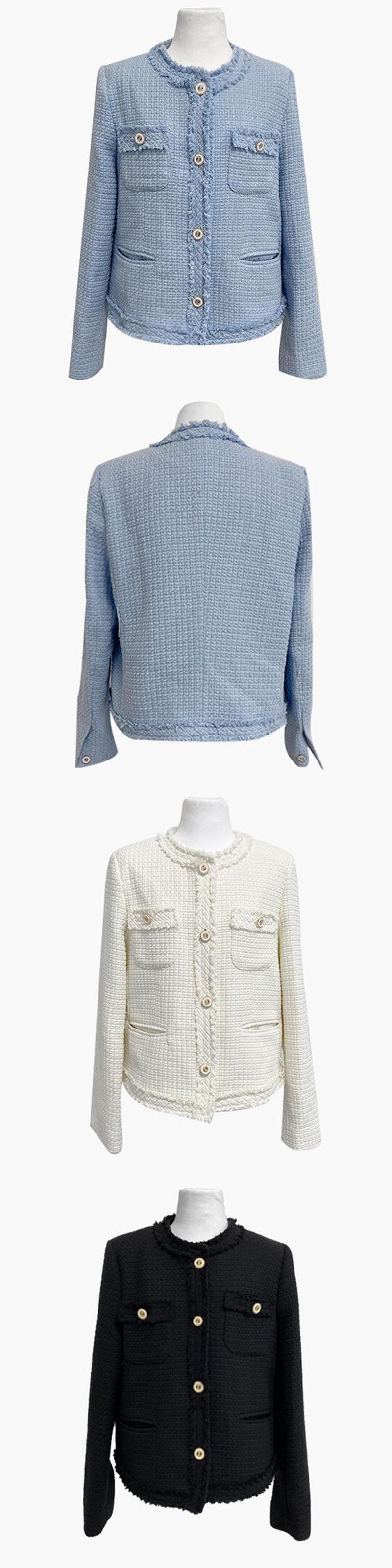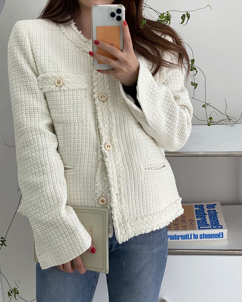 フランスの女性コート ラウンド ネック シックなシングル ブレスト ダブル ポケット オールマッチ長袖ツイード ショート ジャケット ロング Oネック Rhc10898028363