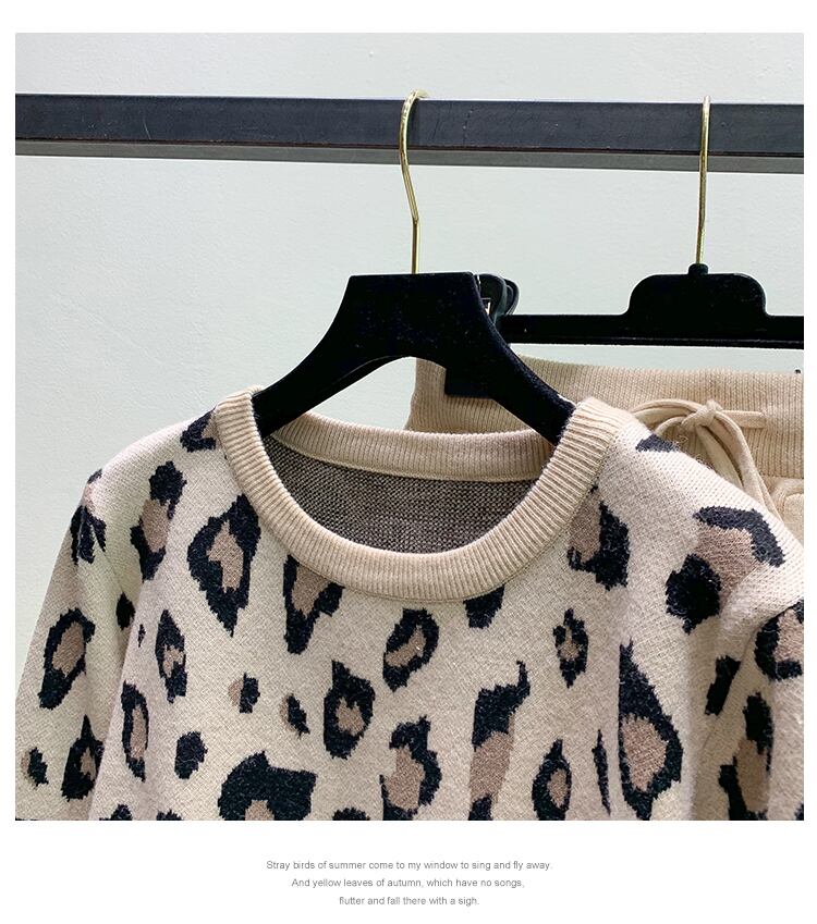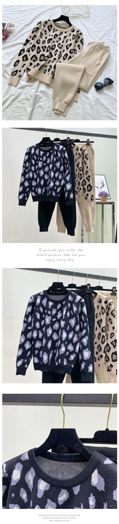 秋ヒョウプリントニット 2 ピーススーツ女性長袖 O ネックセータートップス + 無地ハーレムパンツトラックスーツ ロング オータム 秋物 Oネック ソリッドカラー Rhc85831483211