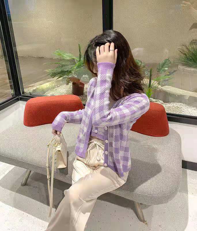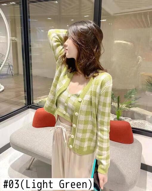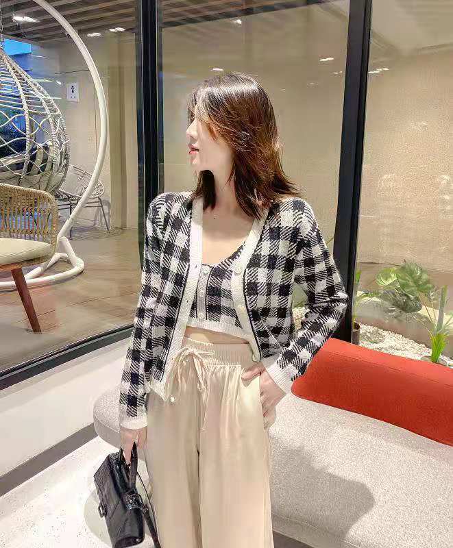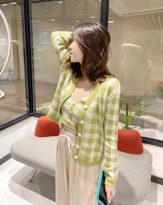 2021 格子キャンディースーツソフトでかわいい気質インニットカーディガン & ベストスリングアイスショートチェック柄ツーピーススーツ女性 大人ガーリー スウィート キュート カジュアル Rhc30698209059